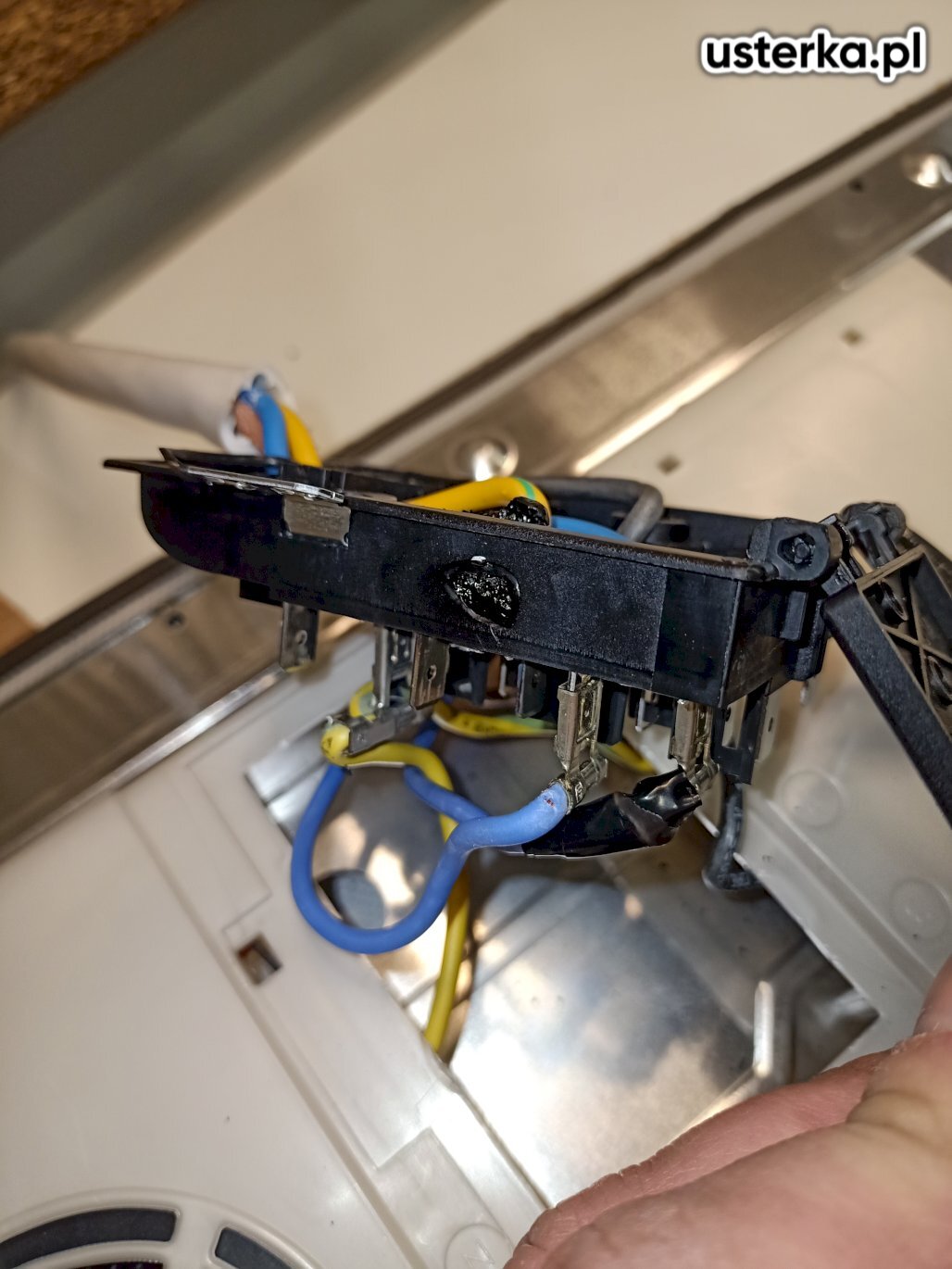 Zgłoszono problem z brakiem podgrzewania wody i suszenia naczyń w zmywarce Electrolux. Po sprawdzeniu grzałki i przewodów zasilających, nie stwierdzono uszkodzeń. Przedmuchano komorę hydrostatu, usuwając zanieczyszczenia, jednak bez efektu. W module sterującym zauważono ślady przegrzania, ale nie wykryto zwarć ani przepaleń. Po ponownym montażu modułu zmywarka zaczęła działać prawidłowo; możliwą przyczyną była poluzowana wtyczka grzałki lub chwilowy problem elektroniczny.