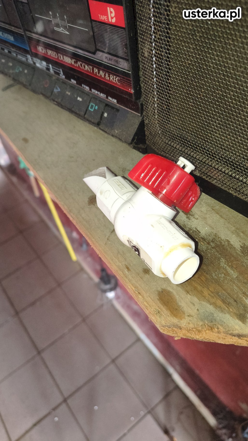 Wymieniono uchwyt zaworu spustowego oraz przeprowadzono czyszczenie zbiornika i zaworu. Zalecana jest wymiana zaworu spustowego.