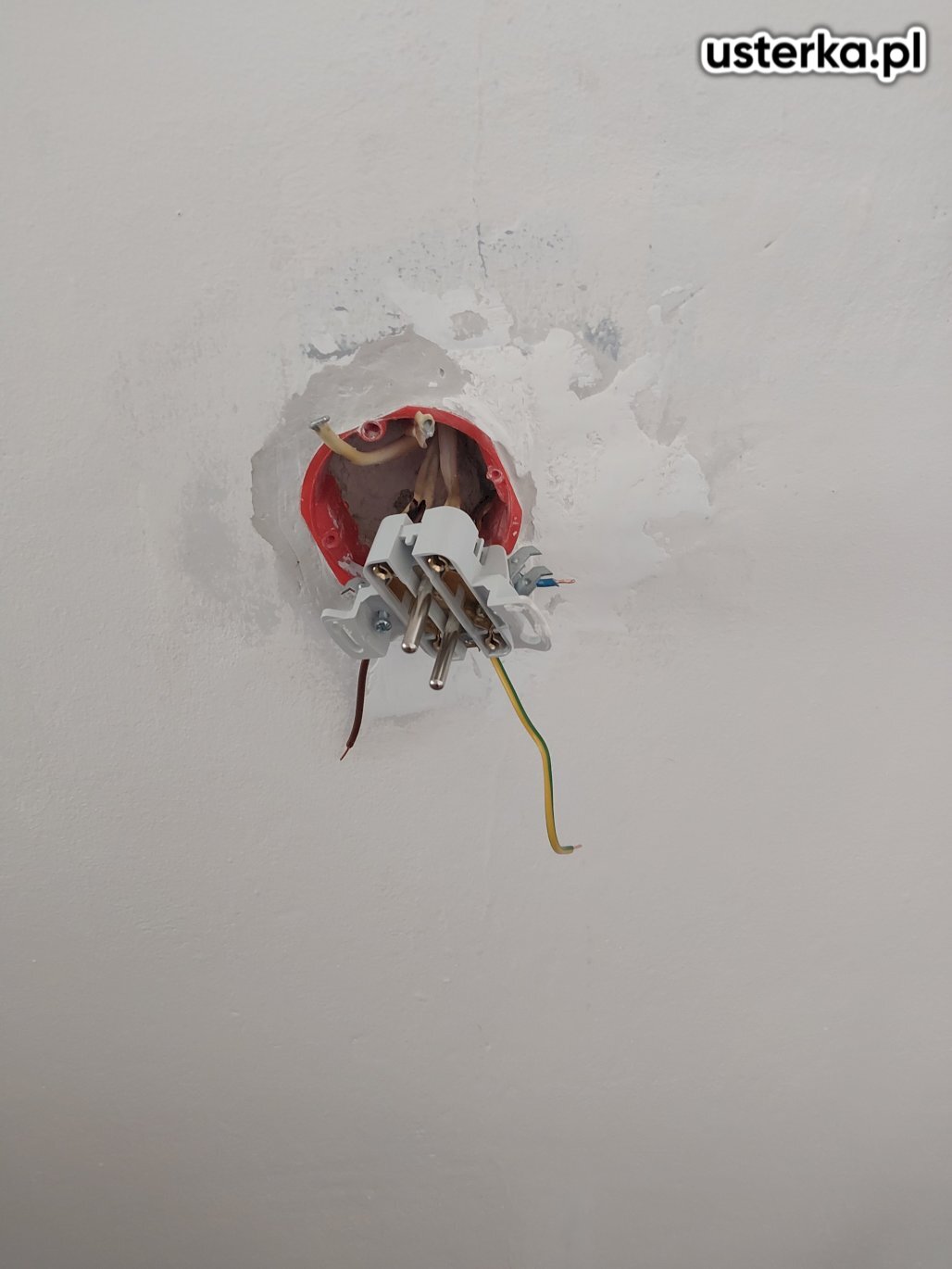 Prace obejmowały instalacje nowych punktów, montaż włącznika, osadzenie puszki oraz szpachlowanie. Wykonano również podłączenie obwodu oświetlenia w rozdzielnicy.