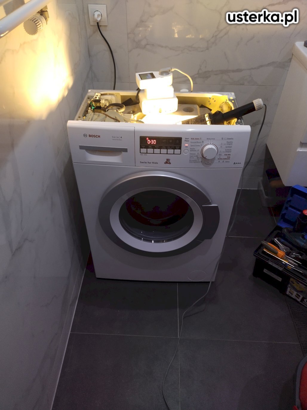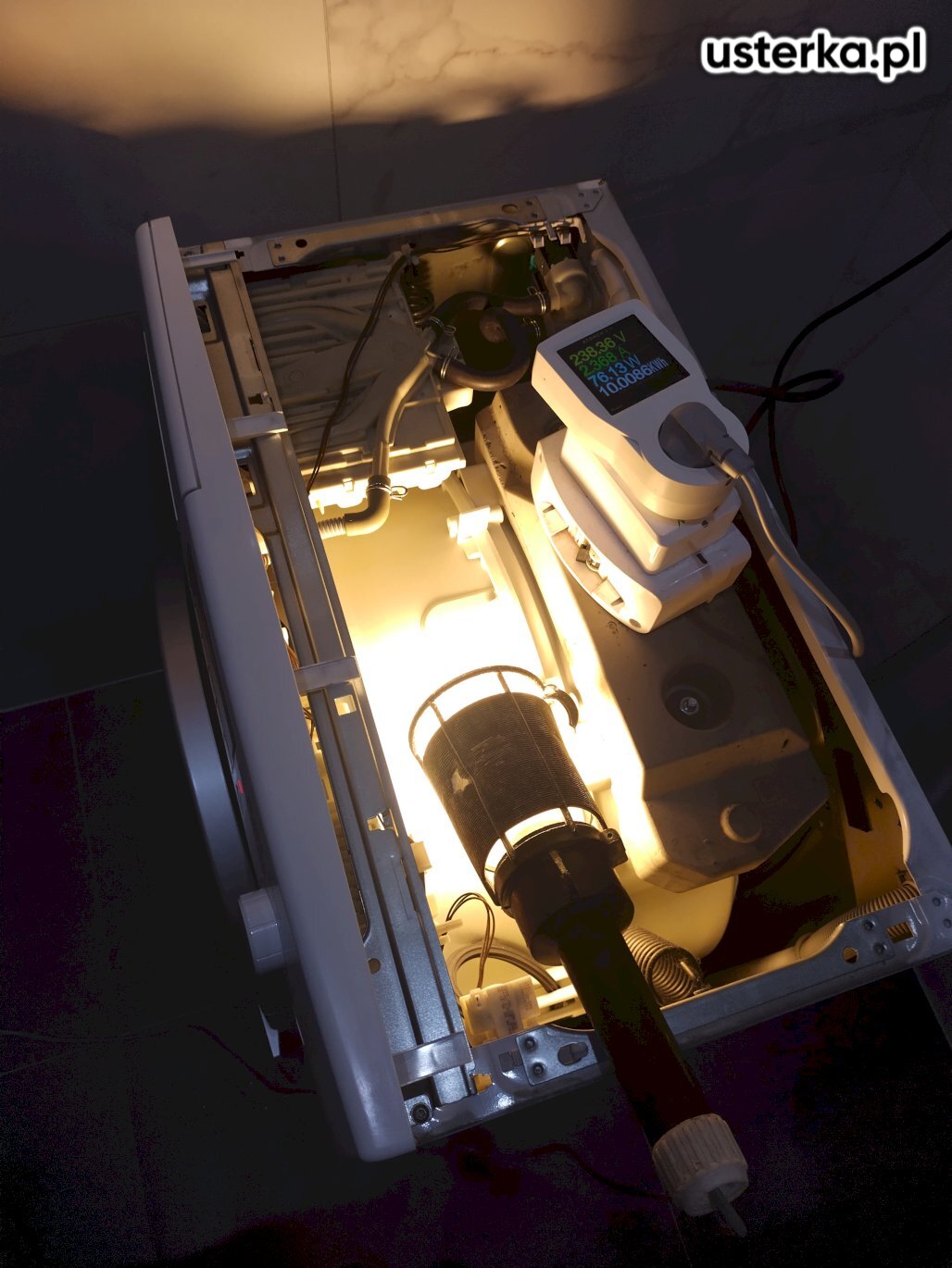 Wymieniono grzałkę w pralce, urządzenie działa prawidłowo.