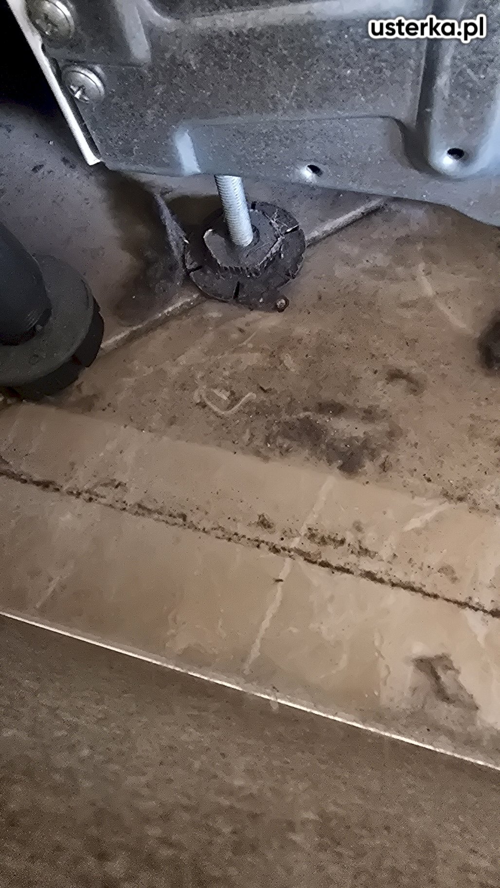 Przyczyną problemu w zmywarce były zanieczyszczone filtry oraz komora hydrostatu. Po ich wyczyszczeniu i przeprowadzeniu testów nie stwierdzono wycieków.