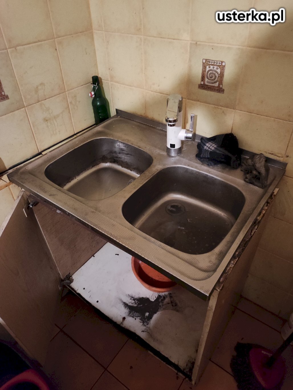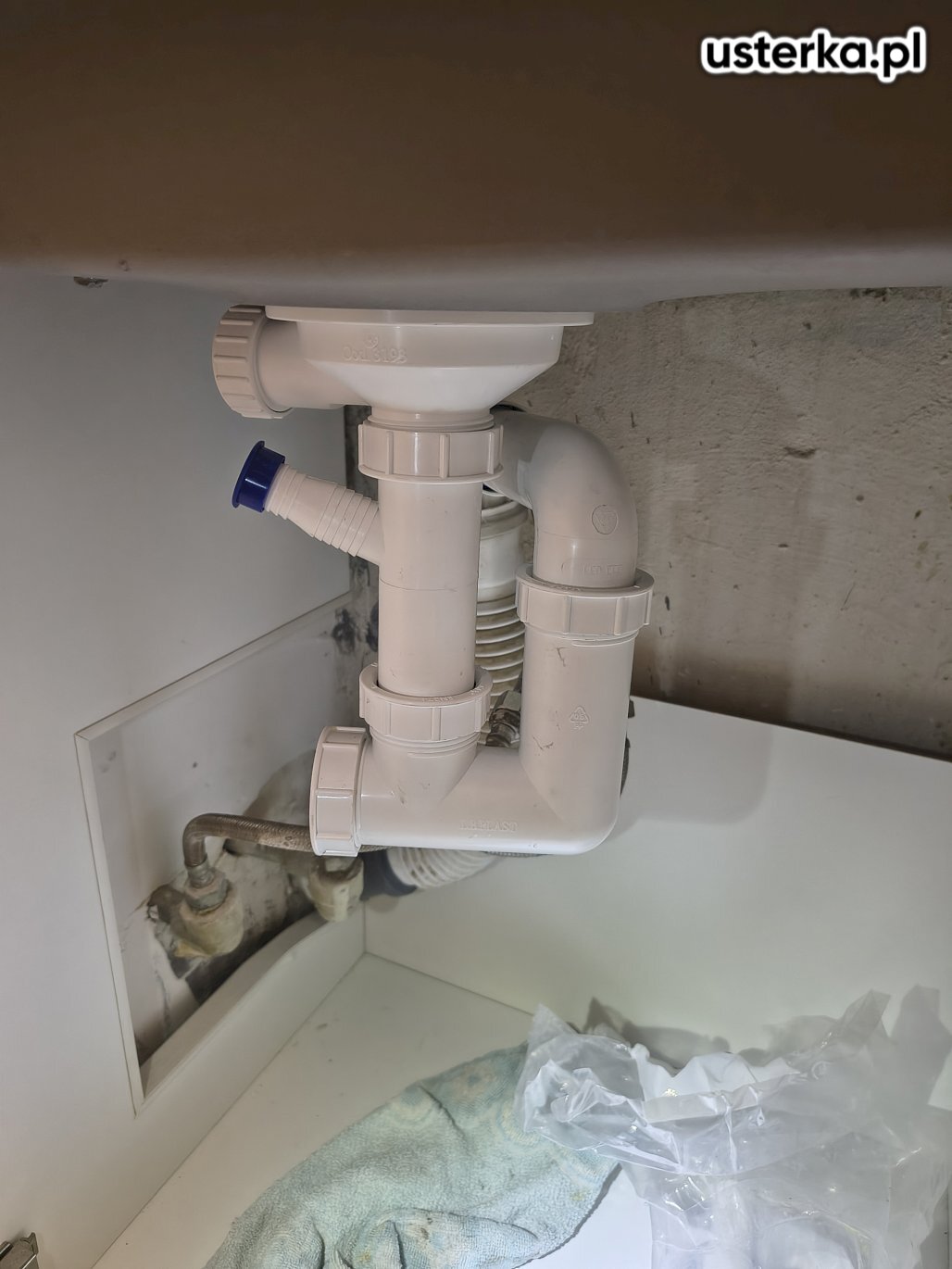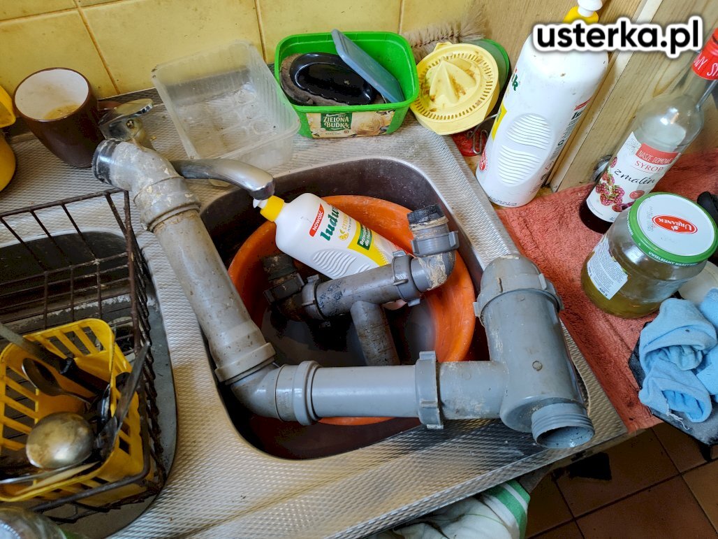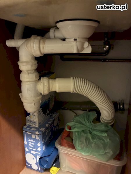 Udrożniłem zatkaną kanalizację pod zlewem, instalacja działa prawidłowo. Na życzenie klienta zaślepiłem również otwartą rurę kanalizacyjną za zmywarką.