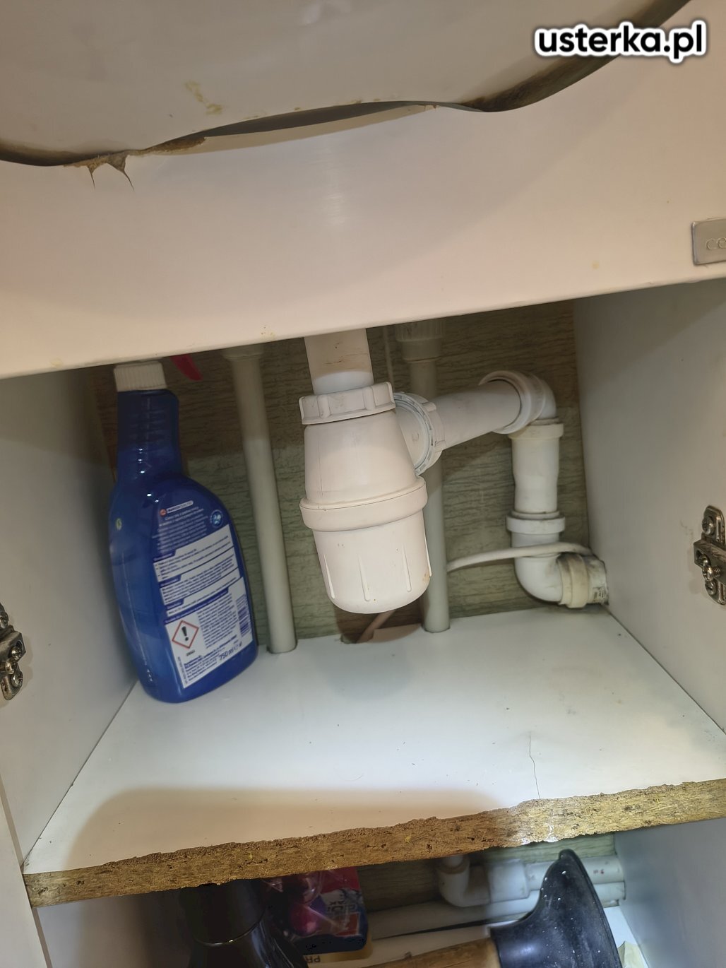 Usunięcie nieszczelności instalacji kanalizacyjnej pod zabudową w łazience.