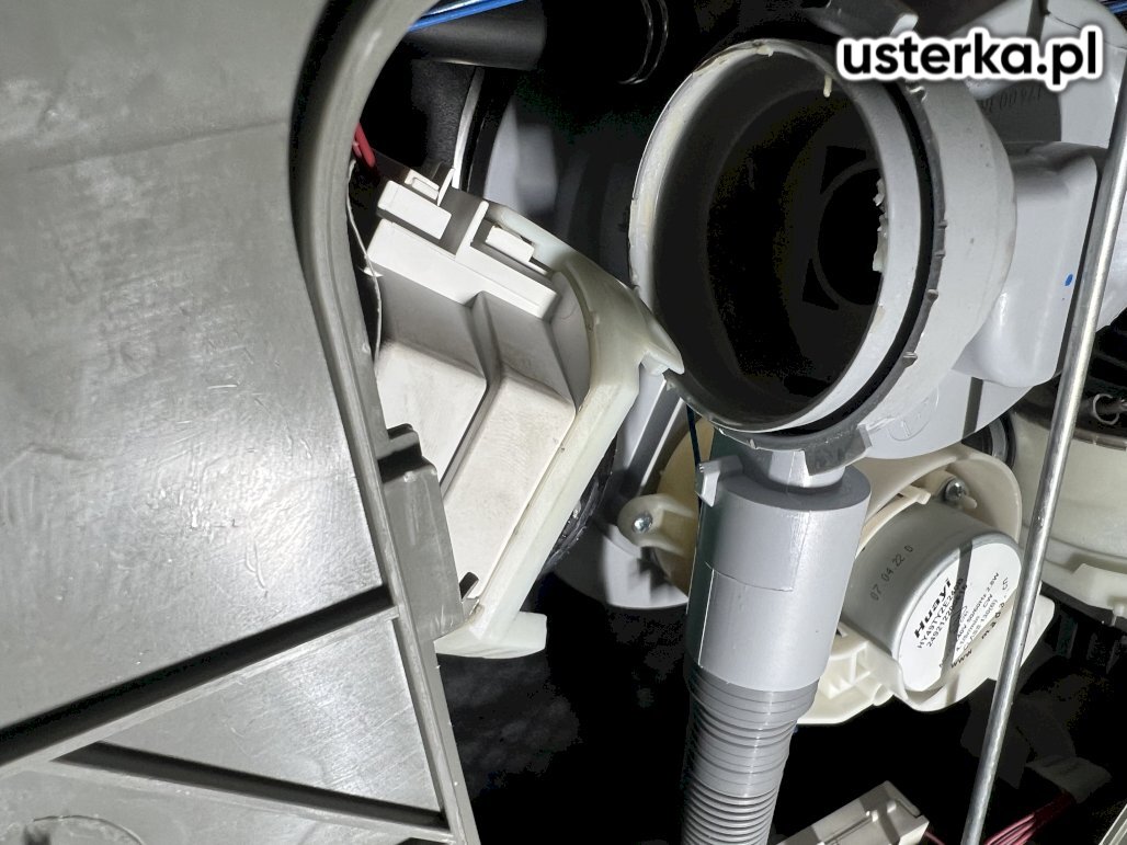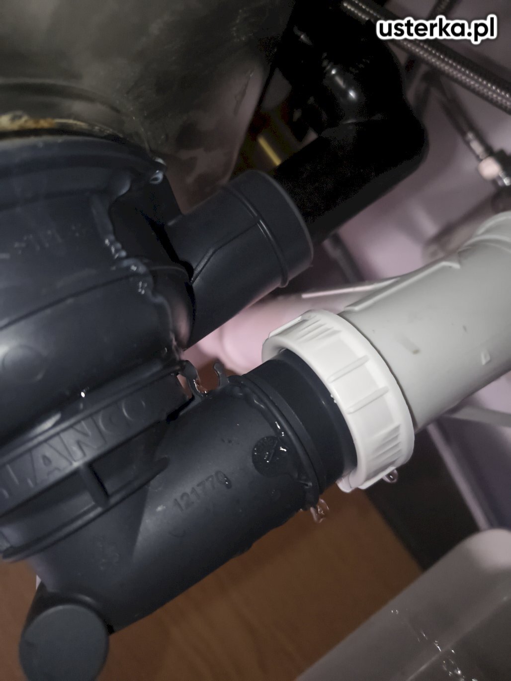 Usunąłem ciało obce z pompy odpływowej oraz wymieniłem uszczelki w odpływie i syfonie.