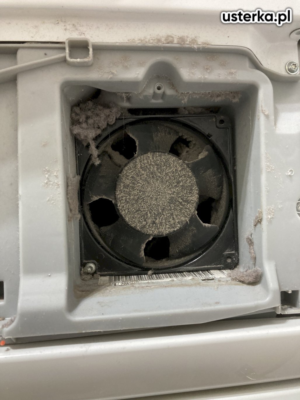 Na miejscu stwierdzono zanieczyszczenie i zablokowanie wiatraków przez ciała obce. Przeprowadzono czyszczenie urządzenia.