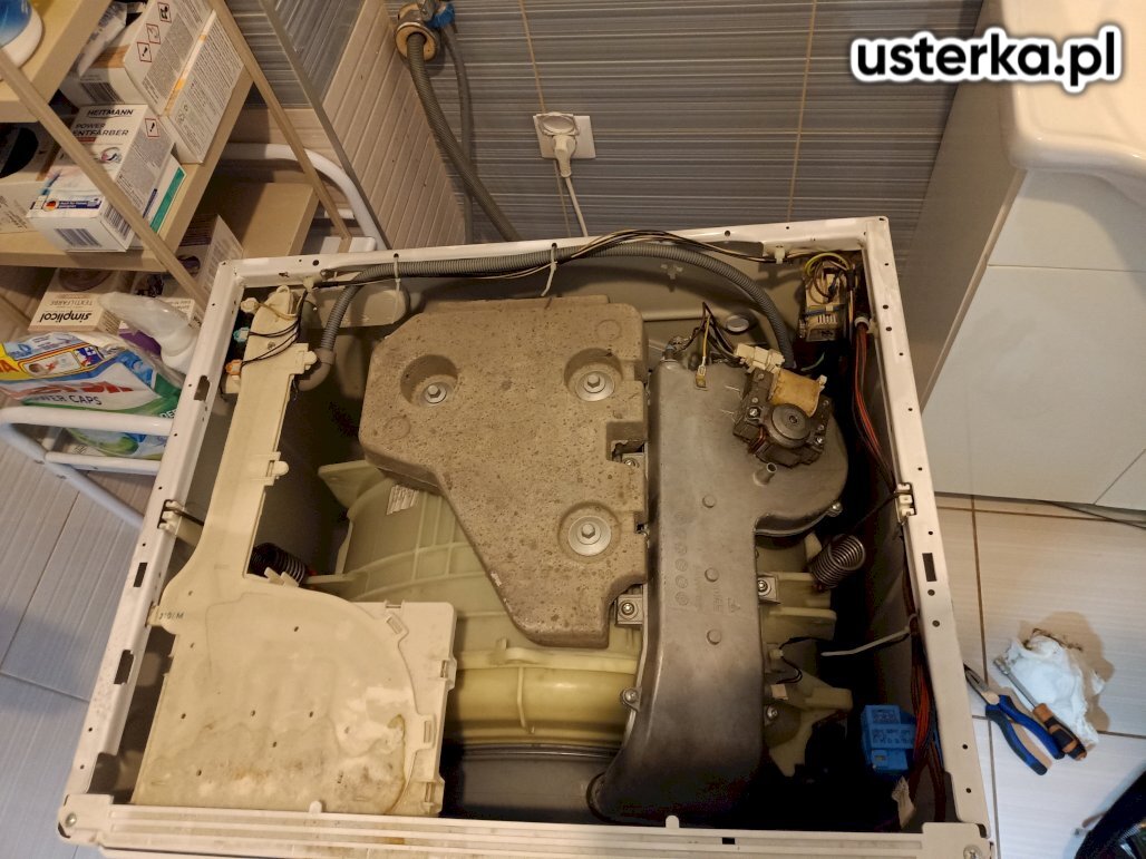Stwierdzono zerwanie paska napędowego, co powoduje pozostawanie wody w bębnie.