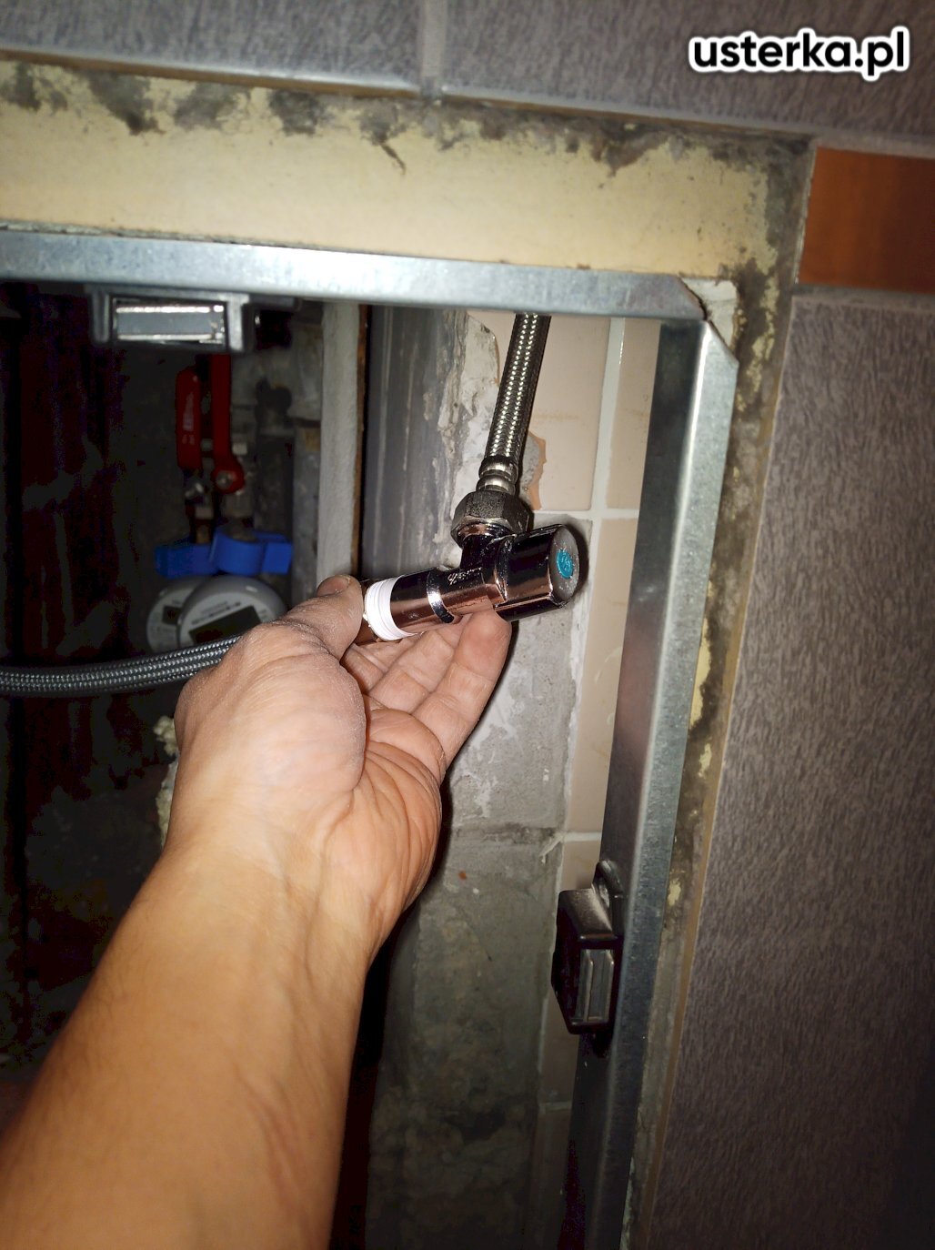 Wymieniono uszkodzony zawór odcinający wodę do WC.
