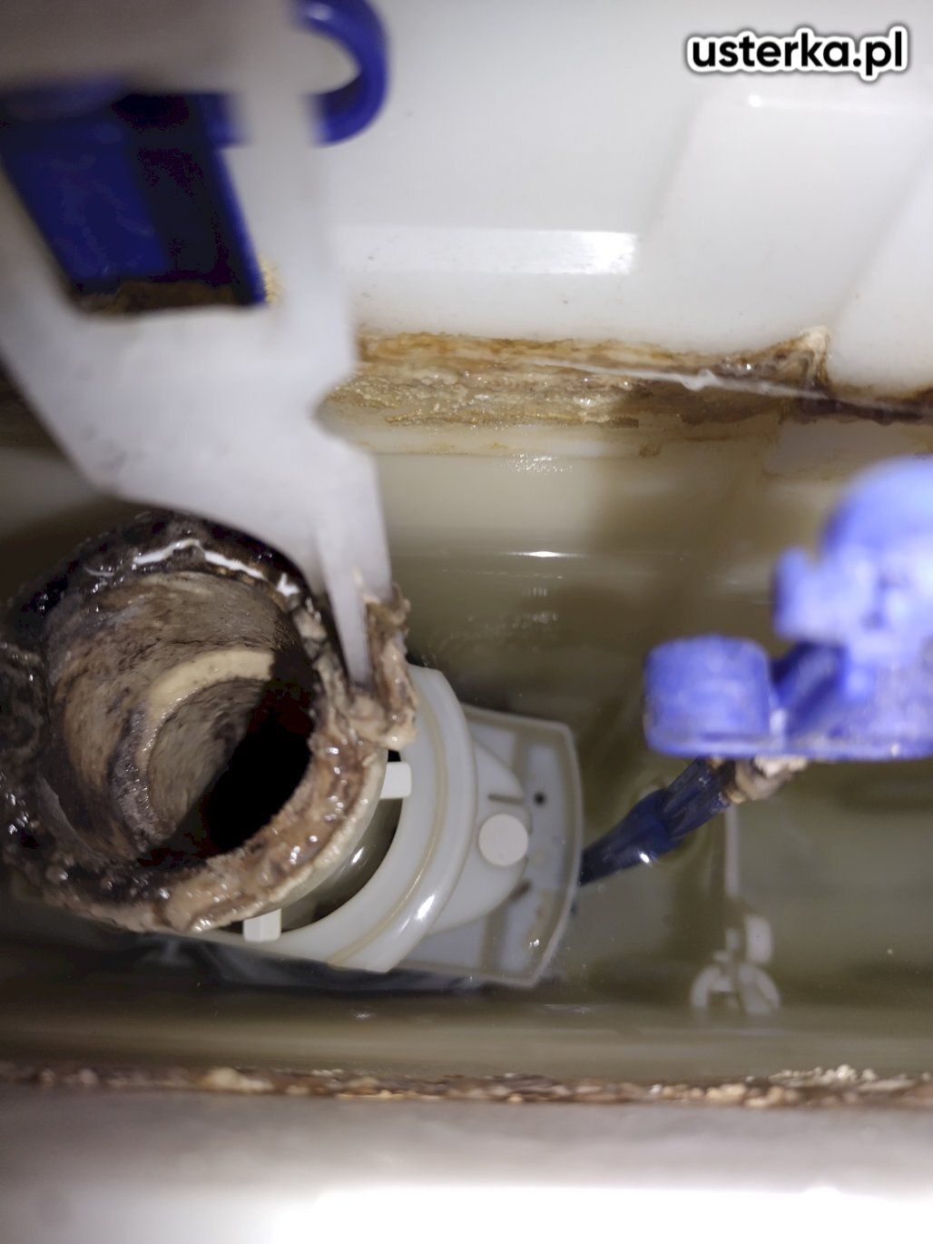 Wymieniono zawór napełniający, spustowy i kątowy oraz zamontowano nowe uszczelki, mocowanie i wężyk. Spłuczka działa prawidłowo, bez wycieków.