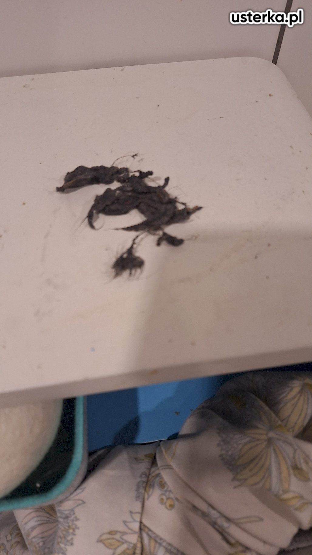 Po oględzinach stwierdzono uszkodzenie łożyska, co spowodowało zatrzymanie bębna i wydobycie się dymu. Konieczna jest wymiana łożyska oraz sprawdzenie pozostałych podzespołów pod kątem ewentualnych uszkodzeń.