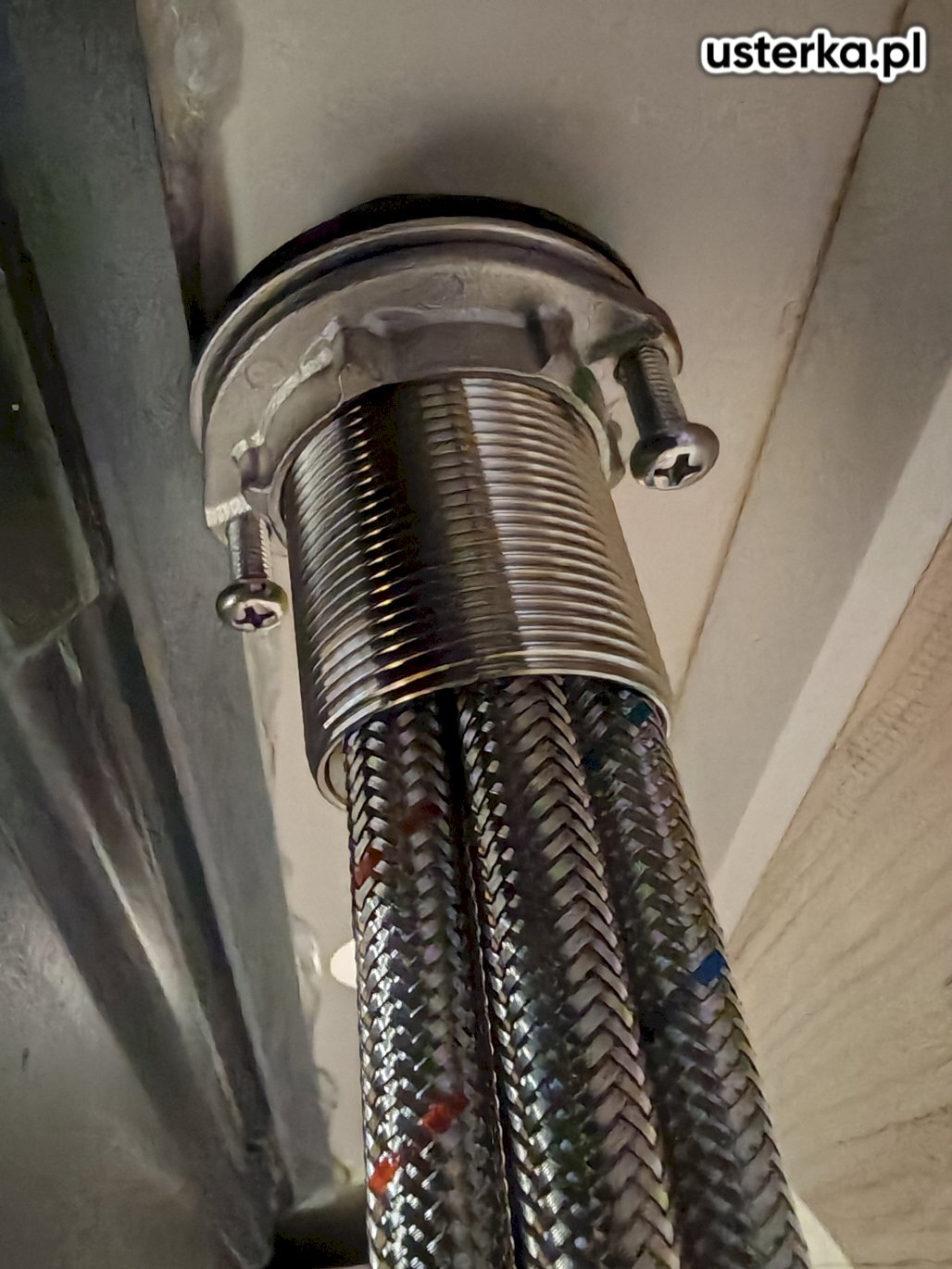 Wymieniłem wężyk do baterii umywalkowej, usuwając nieszczelność na rurce ciepłej wody.