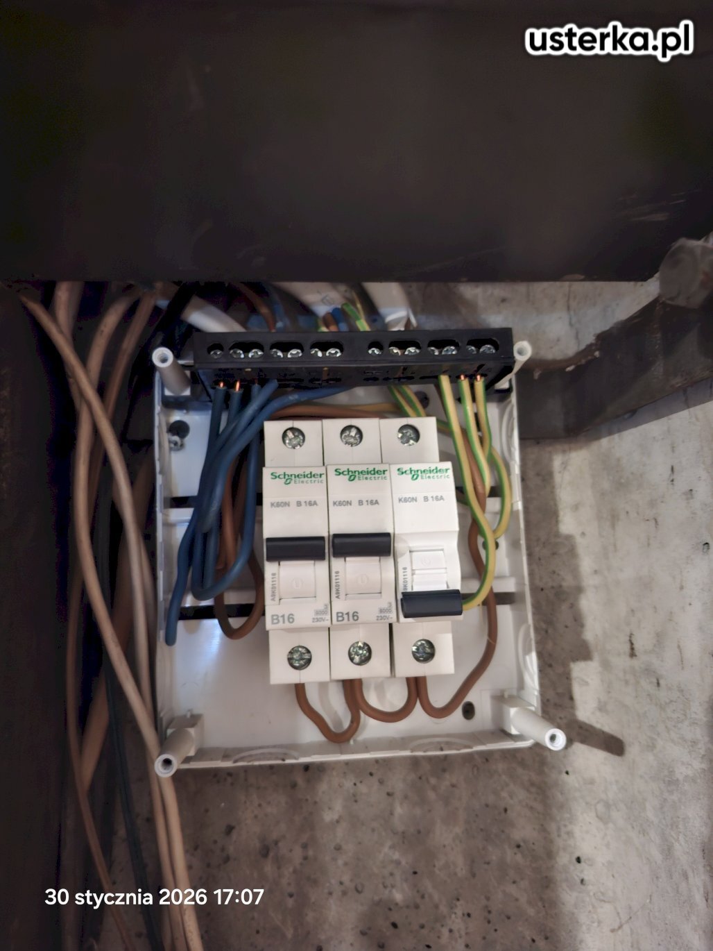 Instalacja oświetleniowa była wykonana z aluminium i miała już swoje lata. Poprawiłem połączenia zarówno w lampach, jak i w łącznikach. Przyczyną awarii było ułamanie przewodu aluminiowego w zacisku lampy. Usunąłem również zbędne przewody zasilające. Po naprawie oświetlenie działa prawidłowo.