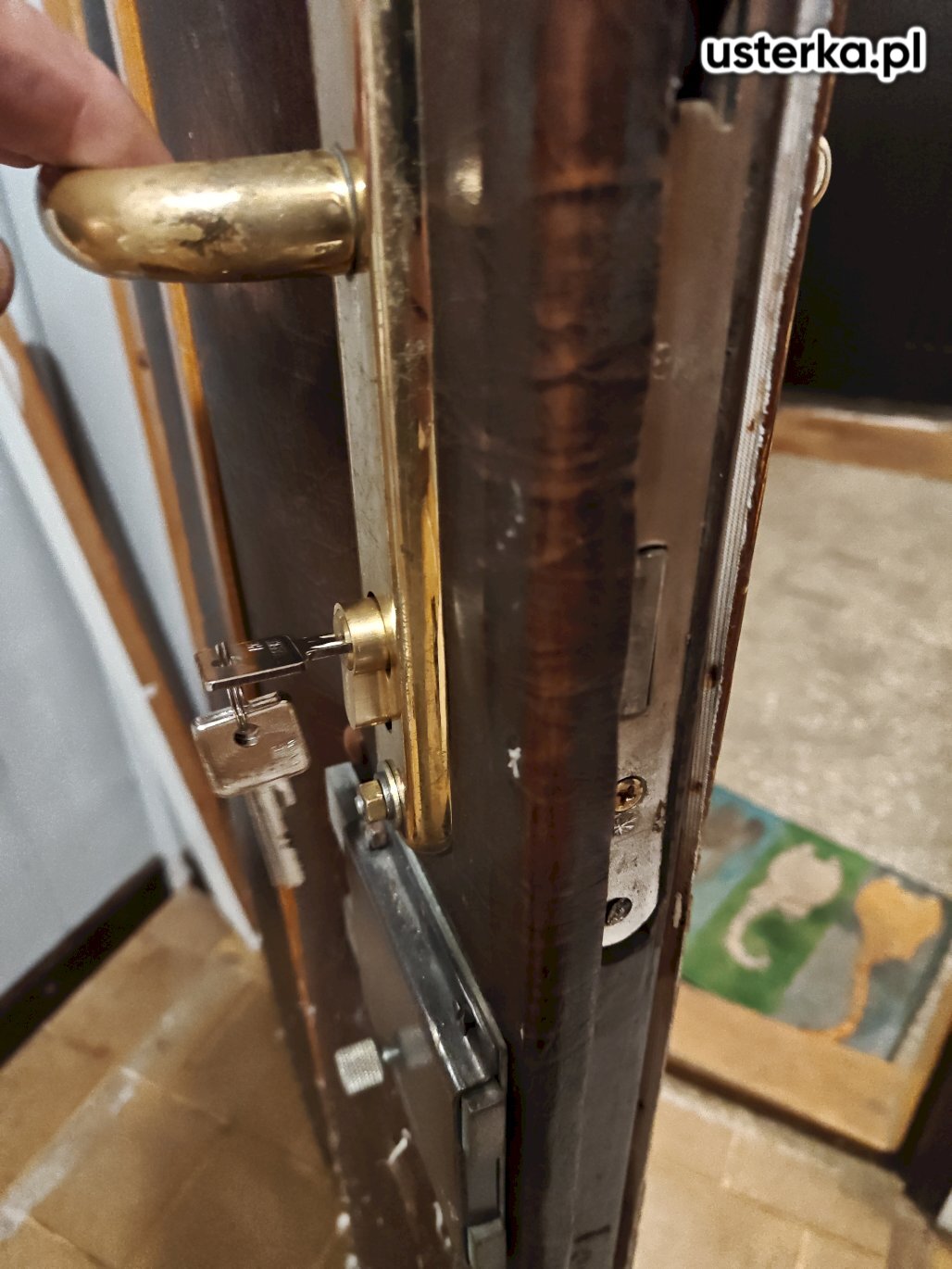 Wkładka zamka była zablokowana i nie dawało się jej przekręcić. Wykonałem demontaż uszkodzonej wkładki oraz zamontowałem nową.