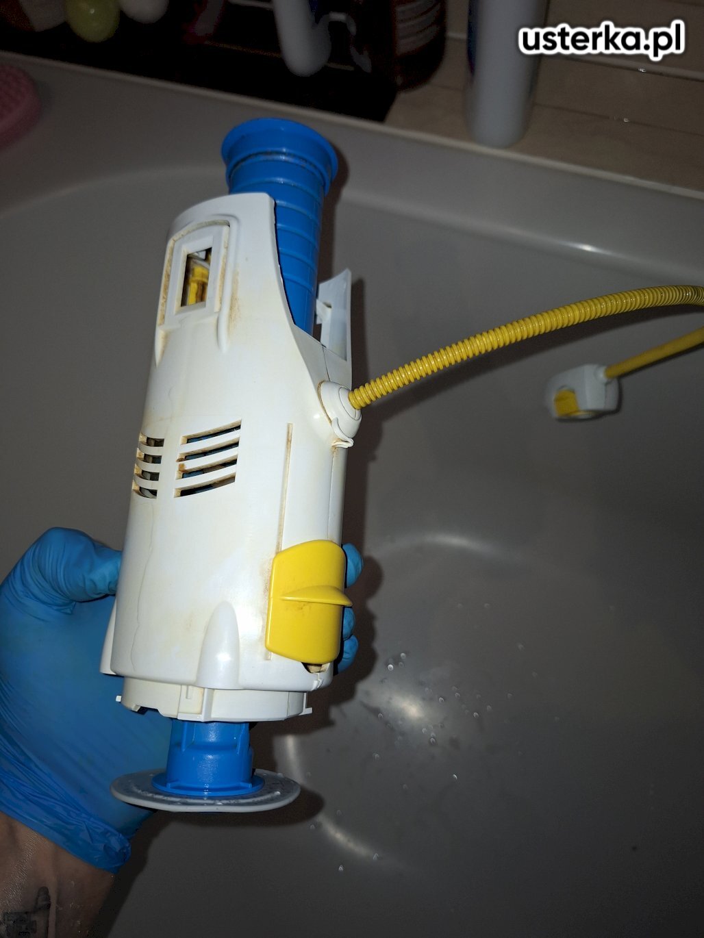 Wymieniłem uszkodzone elementy i przywróciłem prawidłowe działanie spłuczki.