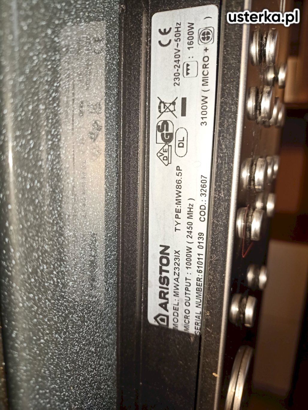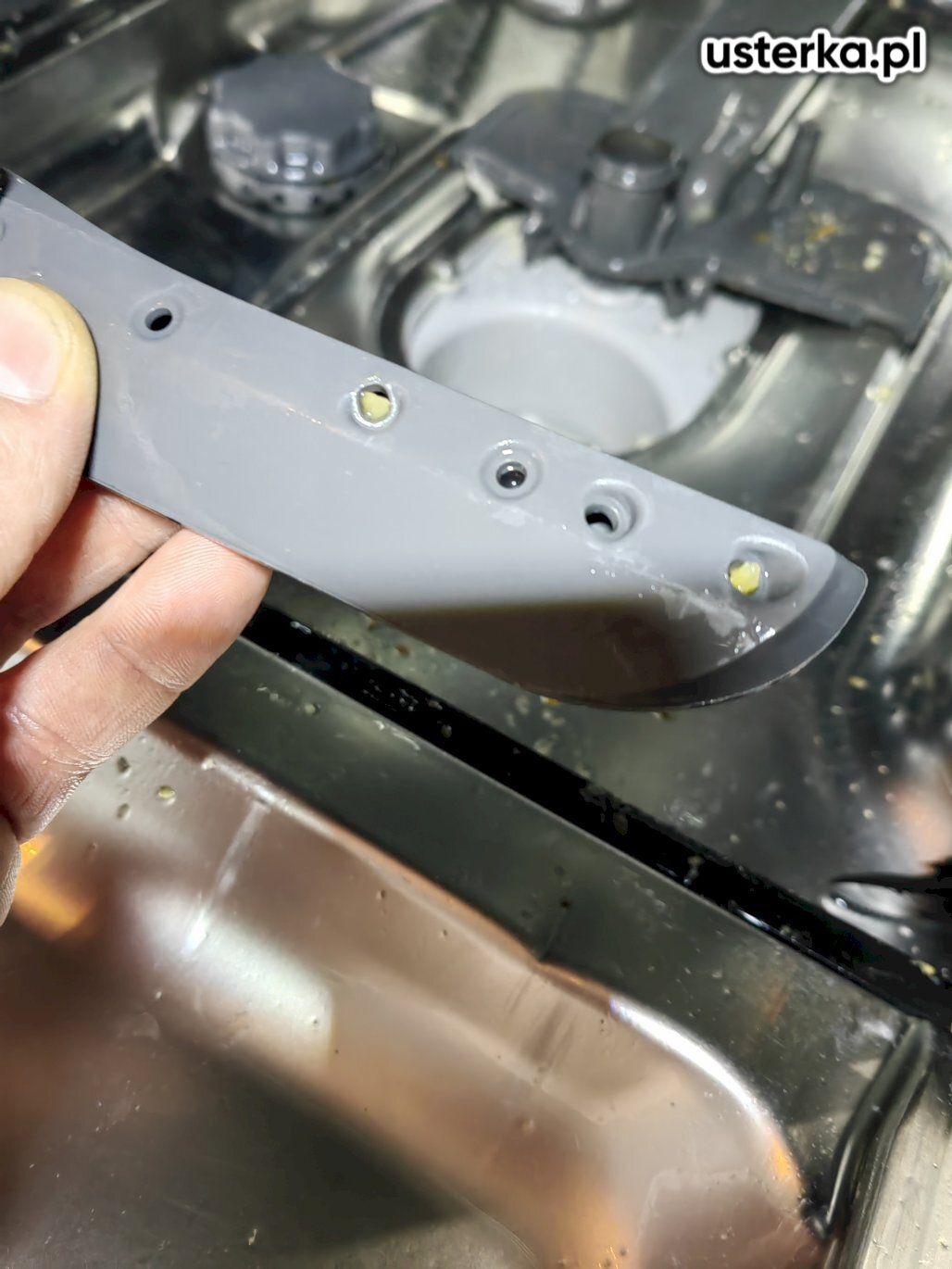 Zmywarka Ariston – przyczyną awarii był zapchany hydrostat. Po oczyszczeniu komory urządzenie działa prawidłowo.