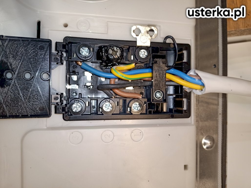 Zgłoszono brak prądu w gniazdku zasilającym piekarnik i mikrofalówkę. Po sprawdzeniu instalacji stwierdzono brak napięcia na podwójnym gniazdku. W trakcie diagnozy odnaleziono puszkę łączeniową, w której przewody były połączone kostką, owinięte folią i zatynkowane. Przyczyną awarii było niedokładne dokręcenie połączenia, co doprowadziło do iskrzenia i stopienia izolacji. Usunięto usterkę, stosując złączki Wago na przewodach fazowych w puszce połączeniowej.