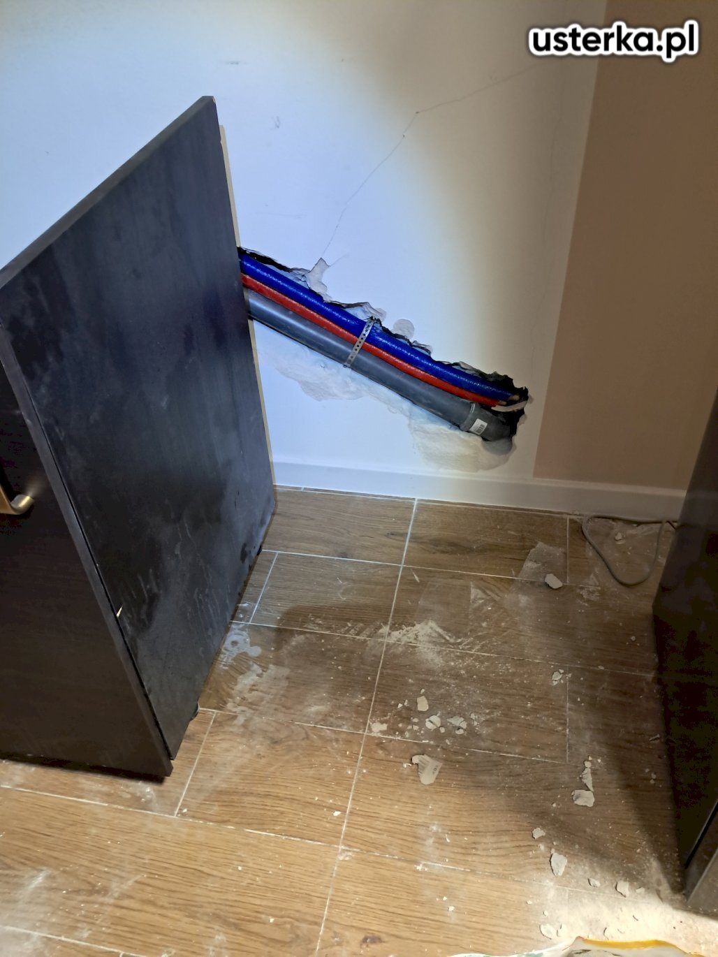 Przyczyną usterki było niedomykanie drzwi spowodowane spuchnięciem frontu meblowego i poluzowaniem mocowań. Zamocowania zostały poprawione.