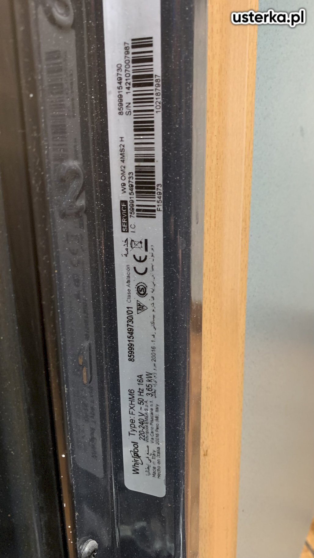 Zmywarka Whirlpool miała napięcie na obudowie z powodu nieprawidłowego gniazdka bez uziemienia. Wymieniłem gniazdko na model z uziemieniem.