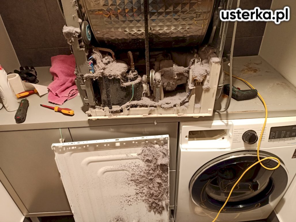 Wykonano przegląd i konserwację pralki oraz suszarki Samsung. Suszarka została dokładnie wyczyszczona i działa prawidłowo.