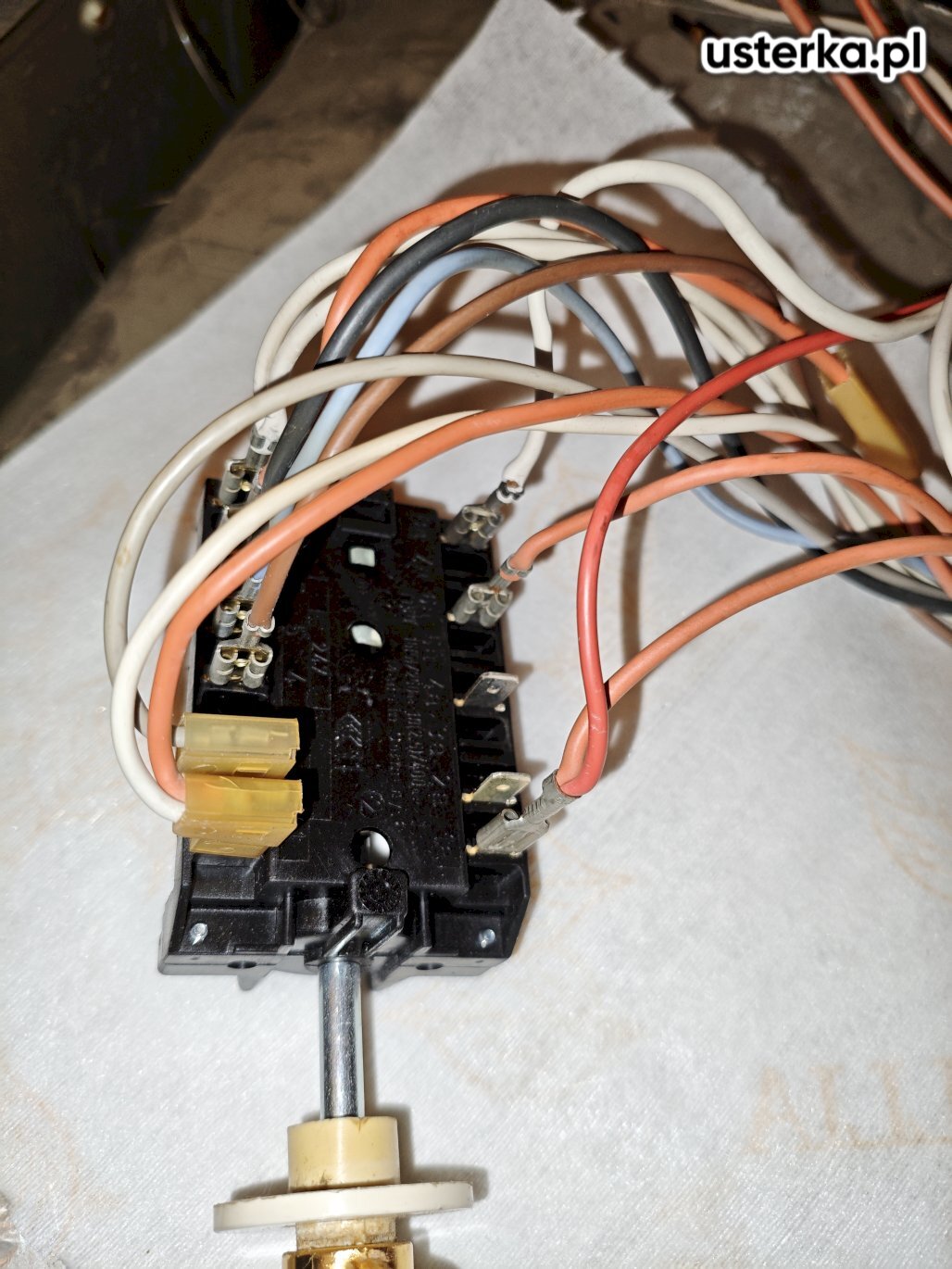 Stwierdzono uszkodzenie przełącznika funkcji w 20-letnim piekarniku Whirlpool.