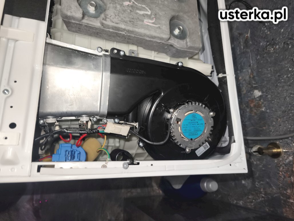 Przyczyną problemu było zanieczyszczenie turbiny silnika suszenia, co powodowało nieprawidłową pracę urządzenia i wyłączanie bezpiecznika termicznego. Po dokładnym wyczyszczeniu komory suszenia oraz turbiny pralko-suszarka działa prawidłowo.