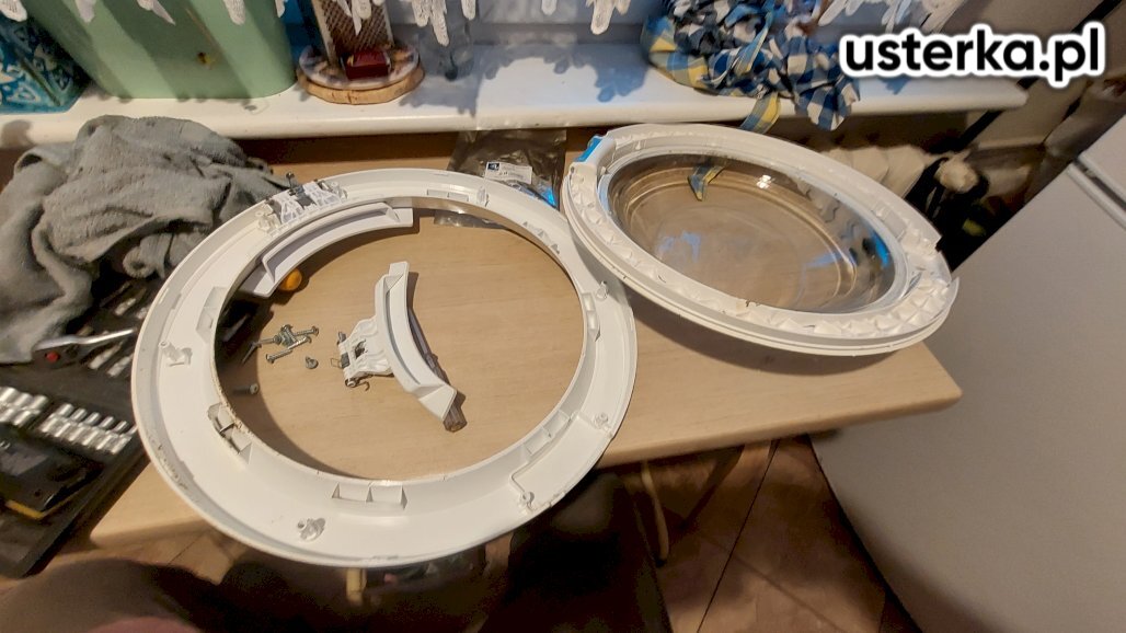 Wymieniono uszkodzoną rączkę zamykania w drzwiczkach pralki.