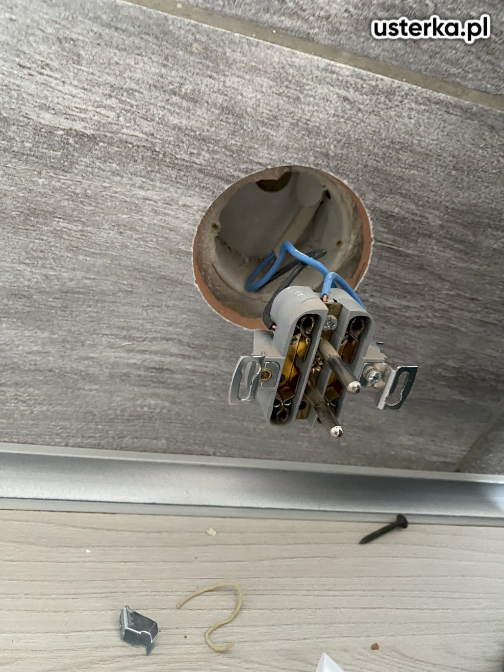 Wymieniono wyłącznik światła w przedpokoju oraz gniazdo elektryczne w kuchni.