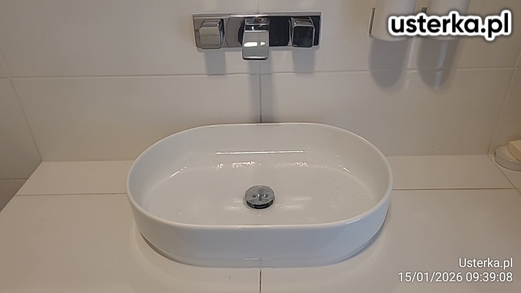 Wymieniłem uszkodzoną umywalkę nablatową wraz z zaworem spustowym i syfonem oraz sprawdziłem szczelność wszystkich połączeń.