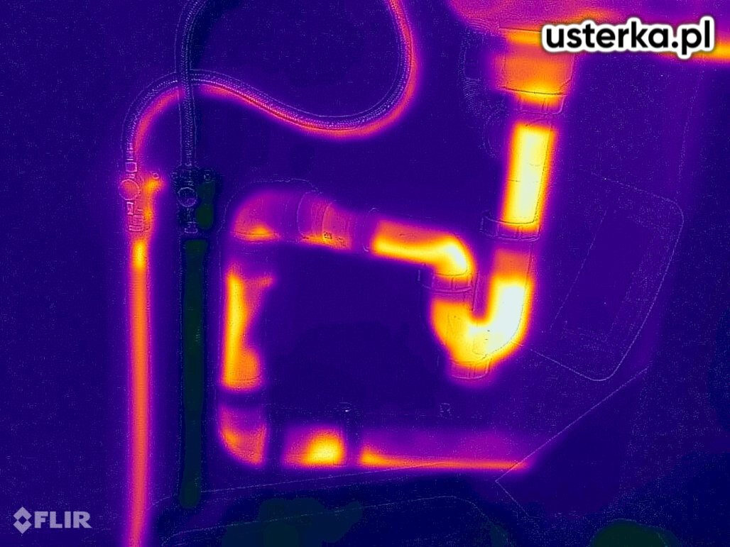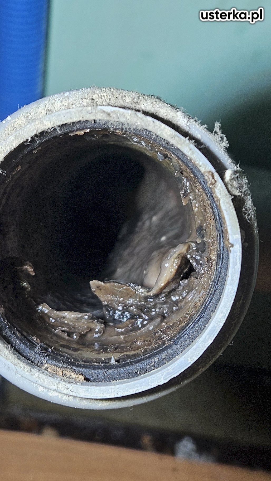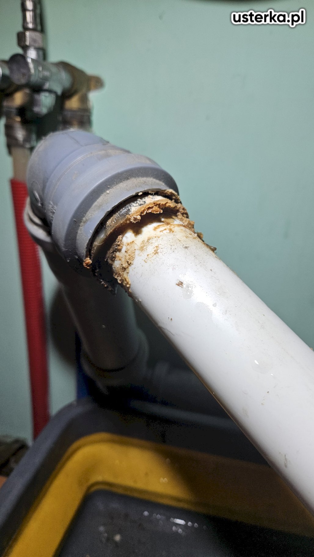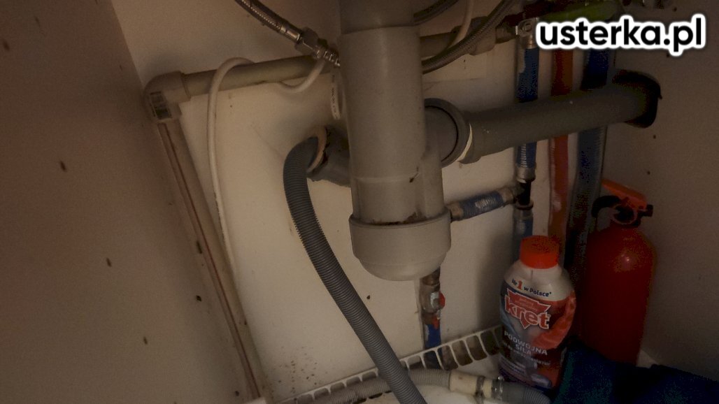 Odpływ przy umywalce i zlewozmywaku był niedrożny z powodu zatoru o długości około 2 metrów, powstałego przez zbrylony środek do udrażniania rur. Po mechanicznym udrożnieniu spiralą elektryczną instalacja jest drożna i szczelna.