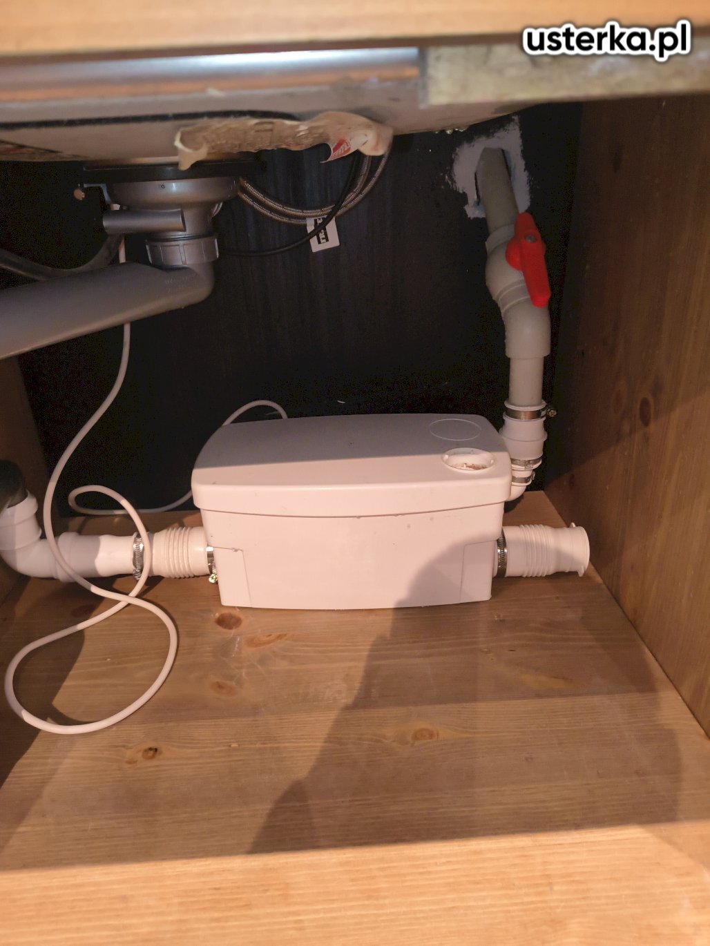 Zdiagnozowałem zabrudzenie pompy pod zlewem, które powodowało problemy z odpływem wody. Po jej oczyszczeniu i wysuszeniu pompa działa prawidłowo. Dodatkowo wyczyściłem syfon oraz udrożniłem rurę kanalizacyjną.