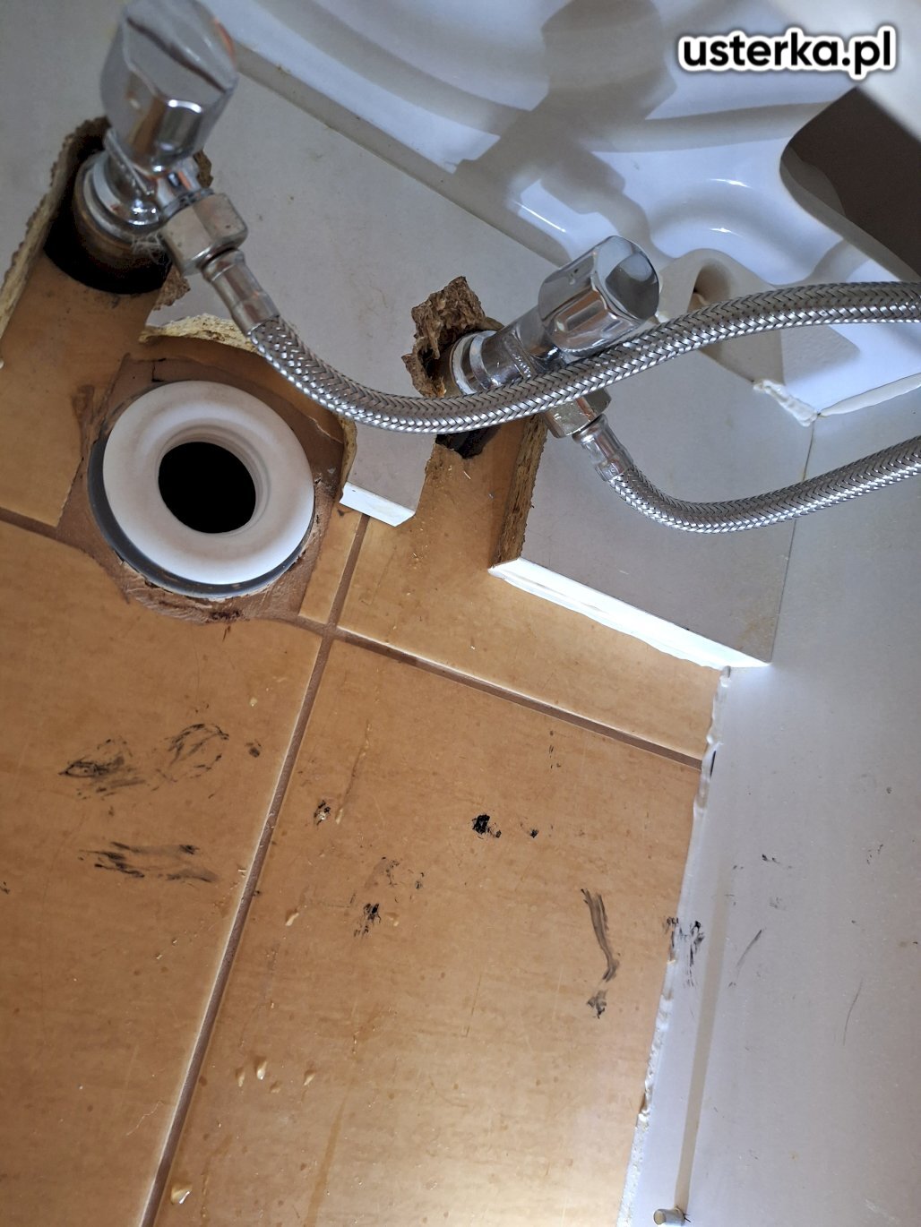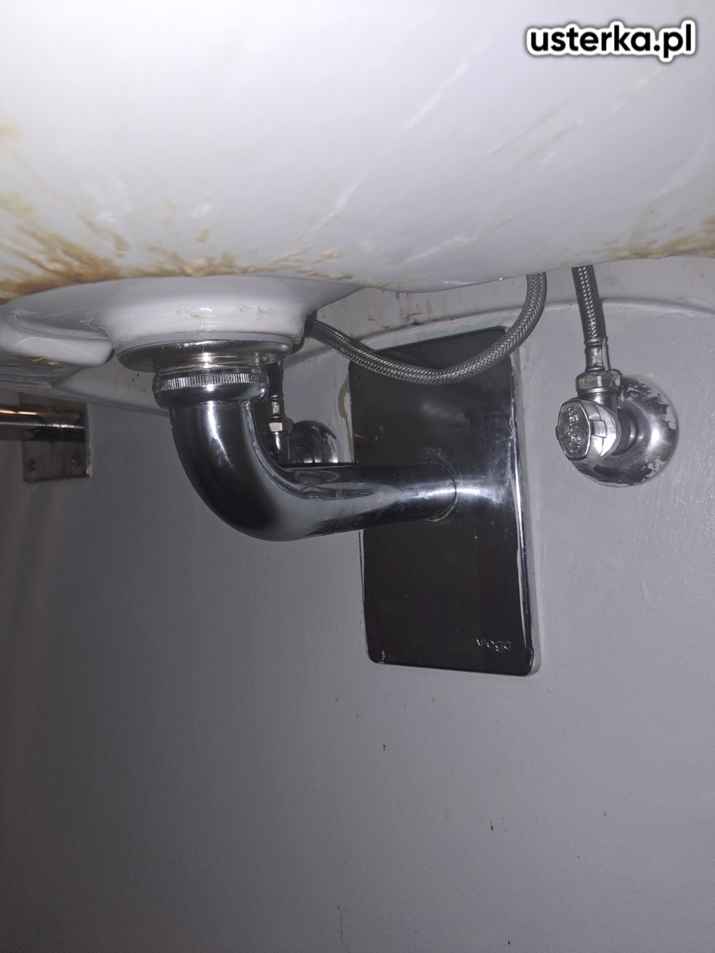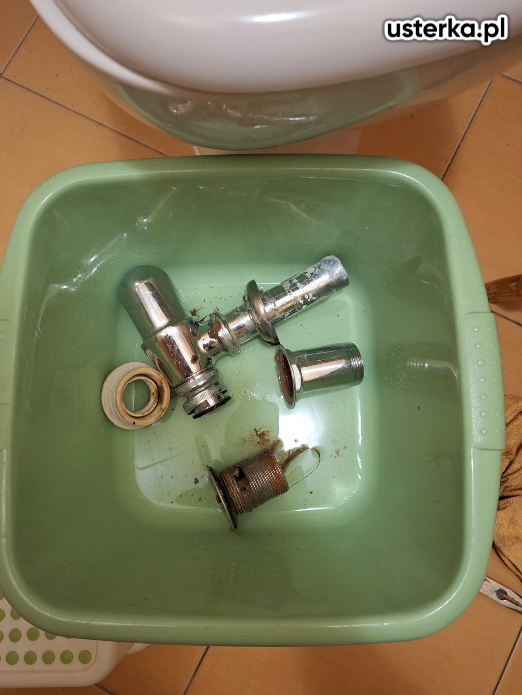 Syfon pod umywalką był uszkodzony i nieszczelny z powodu korozji. Wymieniłem syfon oraz korek spustowy na nowe, a rury zostały wyczyszczone.