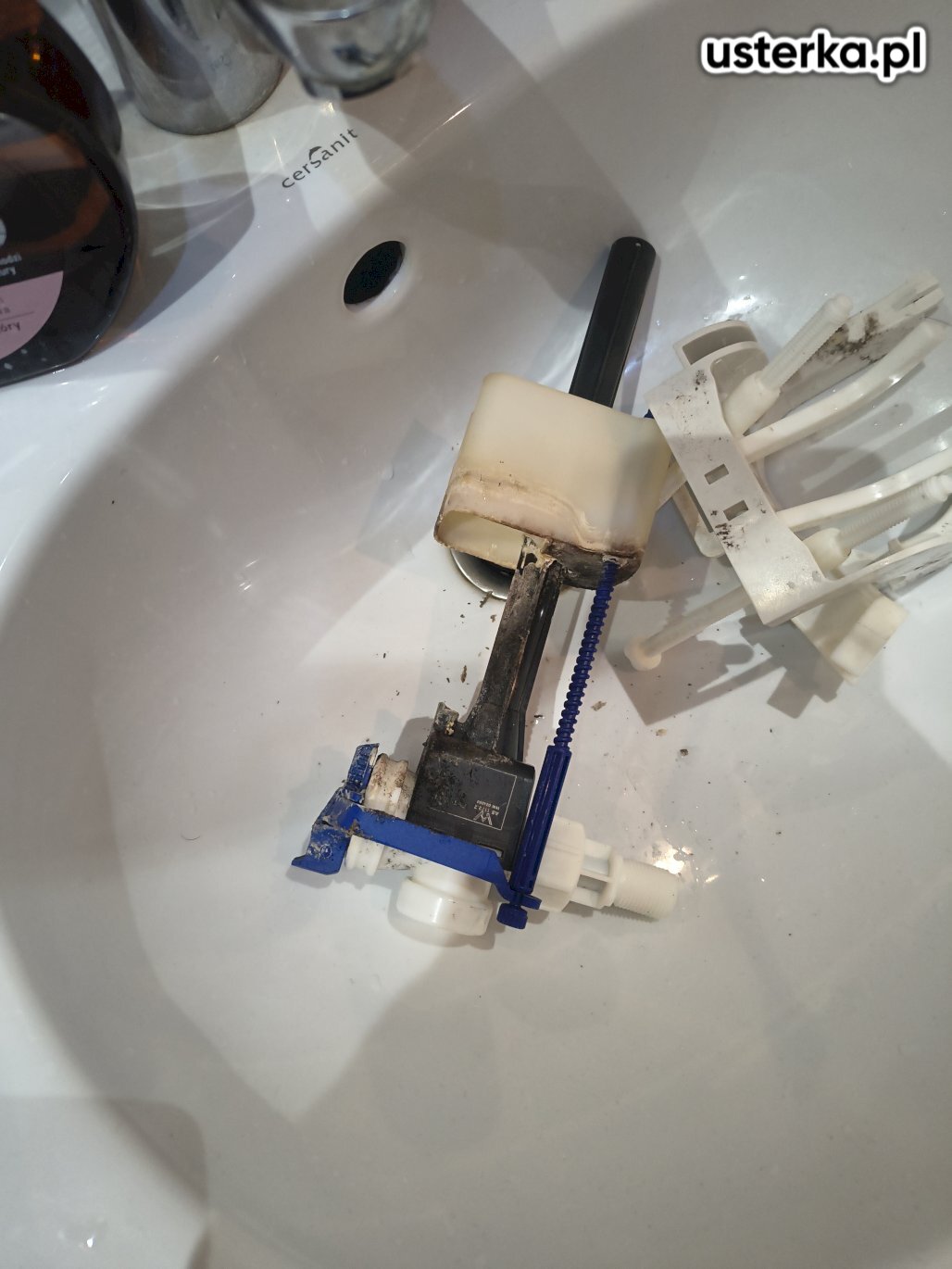 W spłuczce WC Cersanit stwierdzono uszkodzenie zaworu napełniającego. Po jego wymianie urządzenie działa prawidłowo.