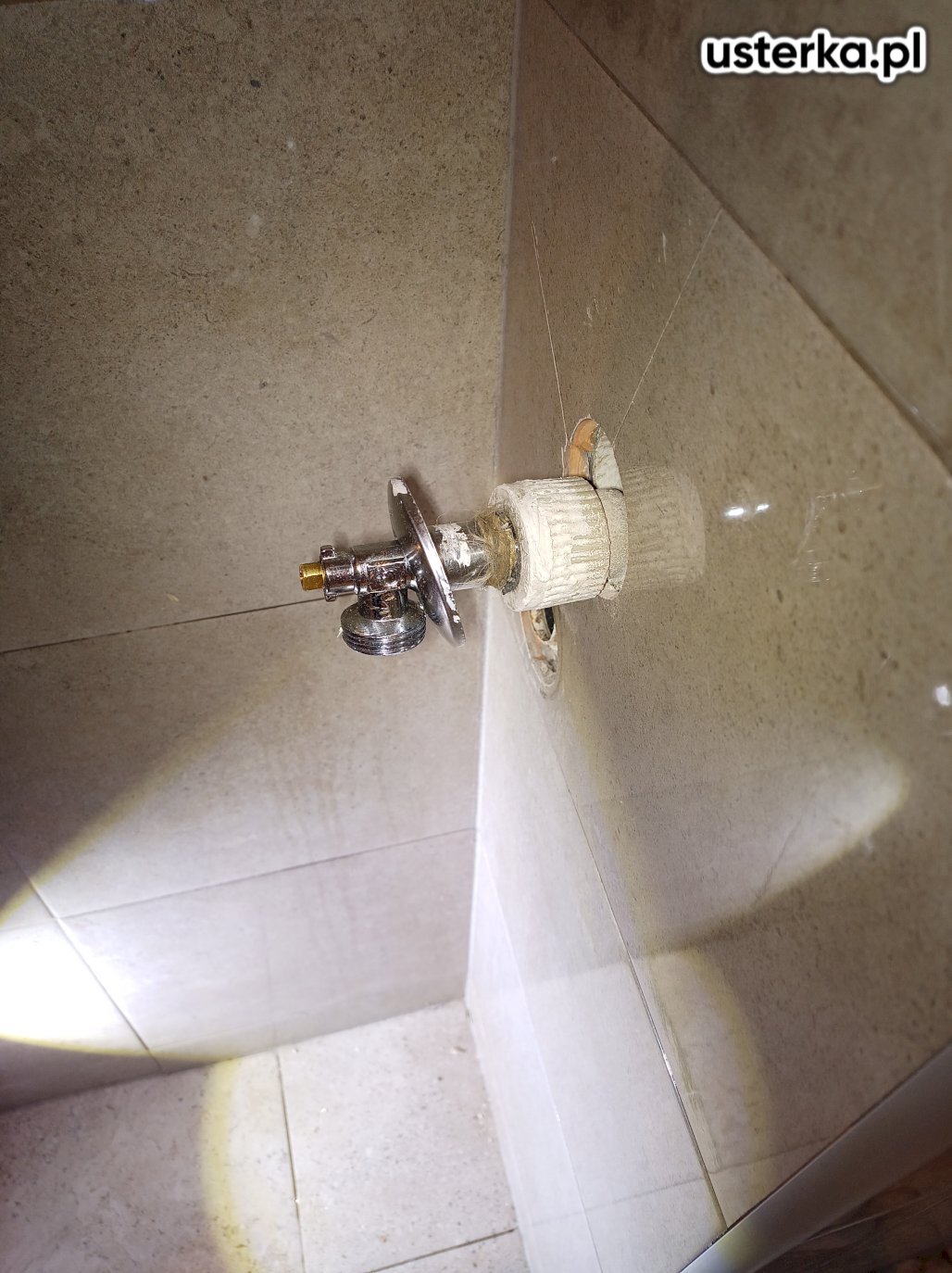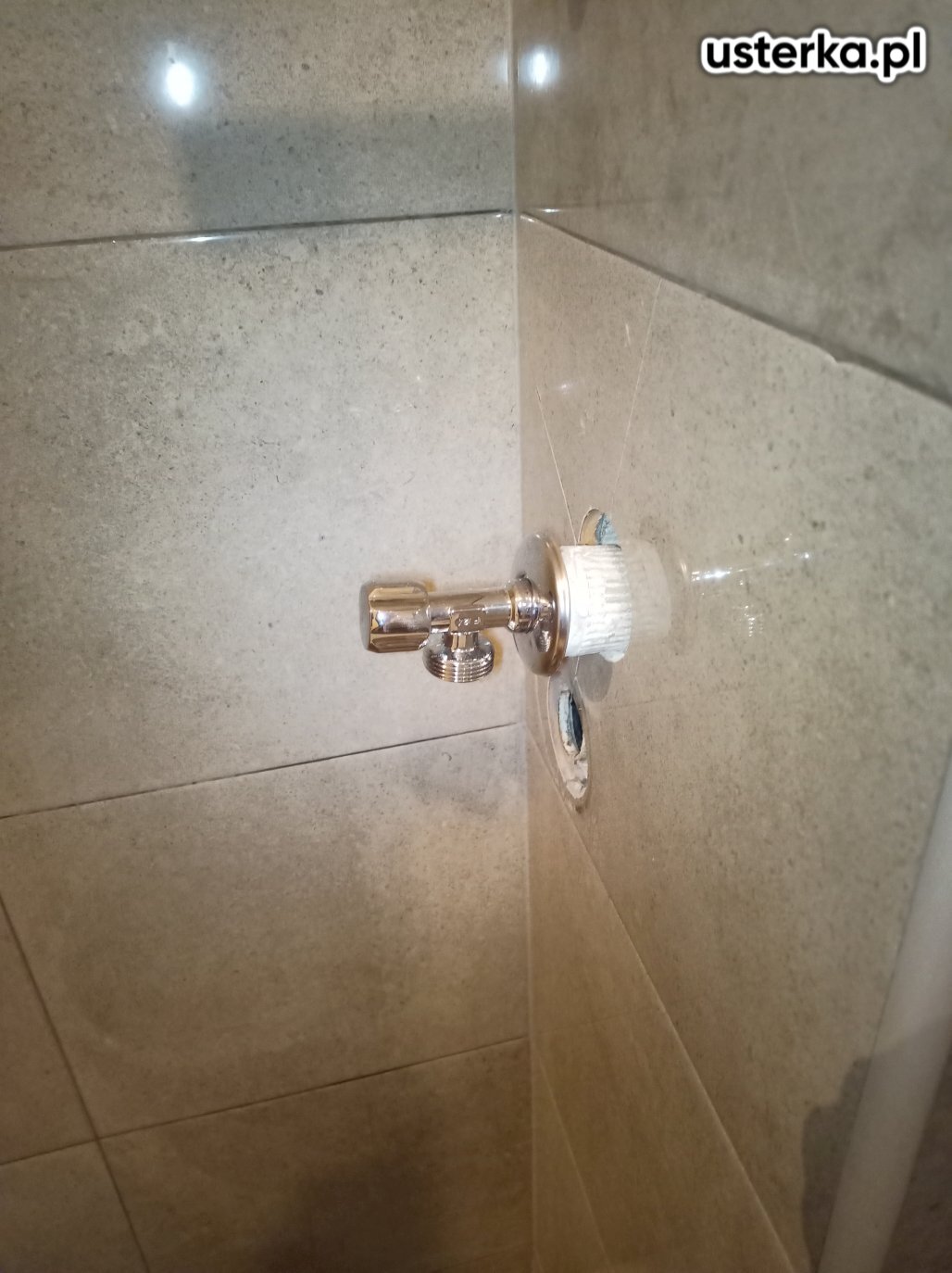 Stwierdzono uszkodzenie króćca mocującego zawór wody w zestawie podtynkowym. Wymiana samego elementu nie jest możliwa – konieczne jest wykucie zestawu i wymiana króćca lub całego mechanizmu.