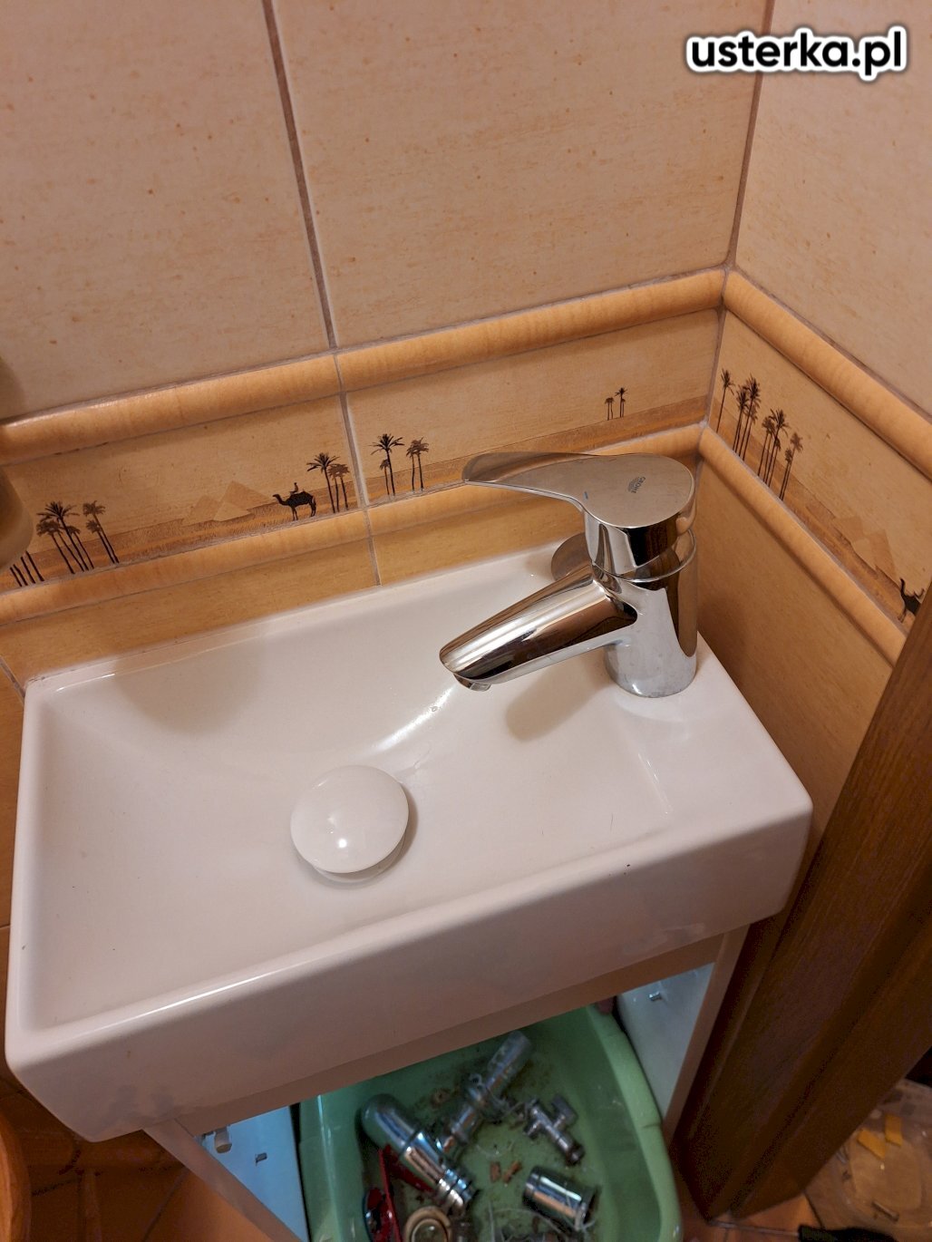 Wymieniono kolano chromowane oraz korek. Instalacja szczelna, brak wycieków.