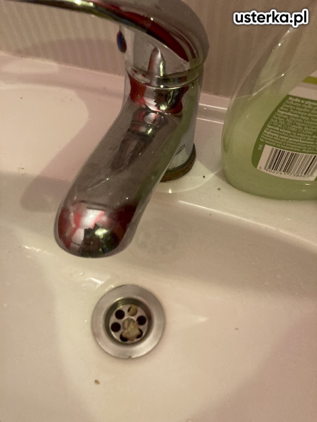 Po weryfikacji zgłoszenia stwierdzono uszkodzenie głowicy baterii umywalkowej. Wymieniono zestaw głowic wraz z pokrętłami oraz sprawdzono szczelność podłączeń.