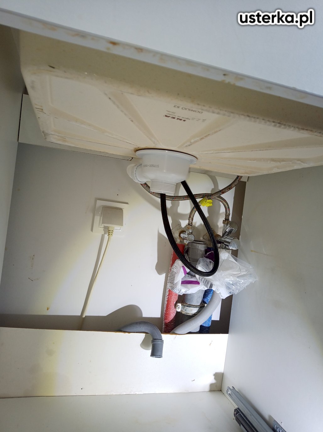 Udrożniłem odpływ zlewozmywaka, dokręciłem baterię oraz zamontowałem opaskę na wąż zmywarki.