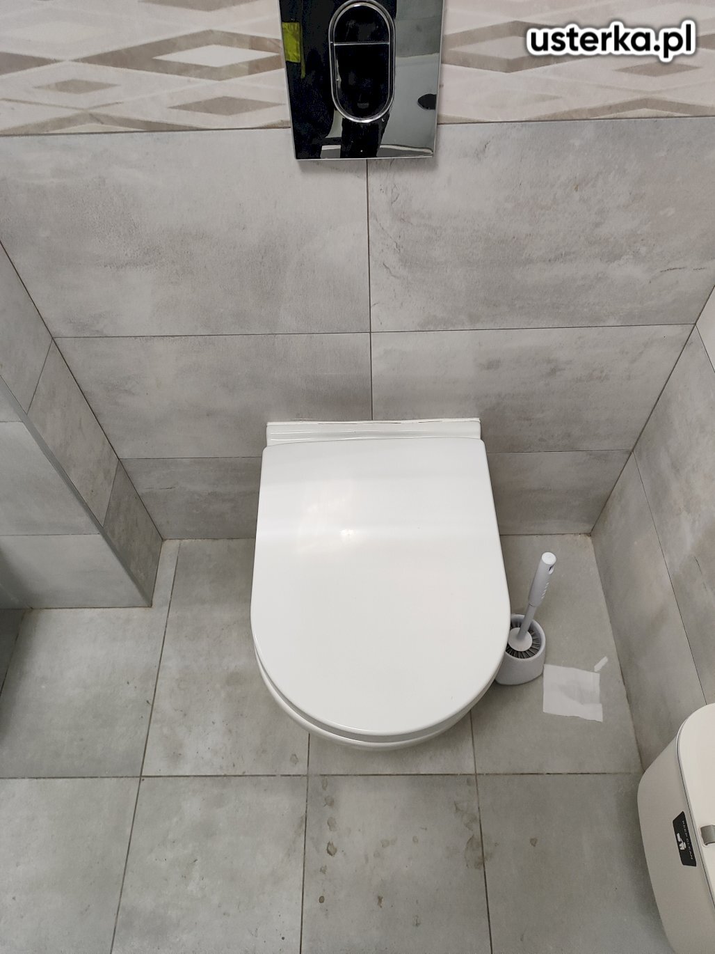 W toalecie w zabudowie woda nie napełniała się z powodu zablokowanego pływaka i zaworu. Usterka została usunięta, spłuczka działa prawidłowo.