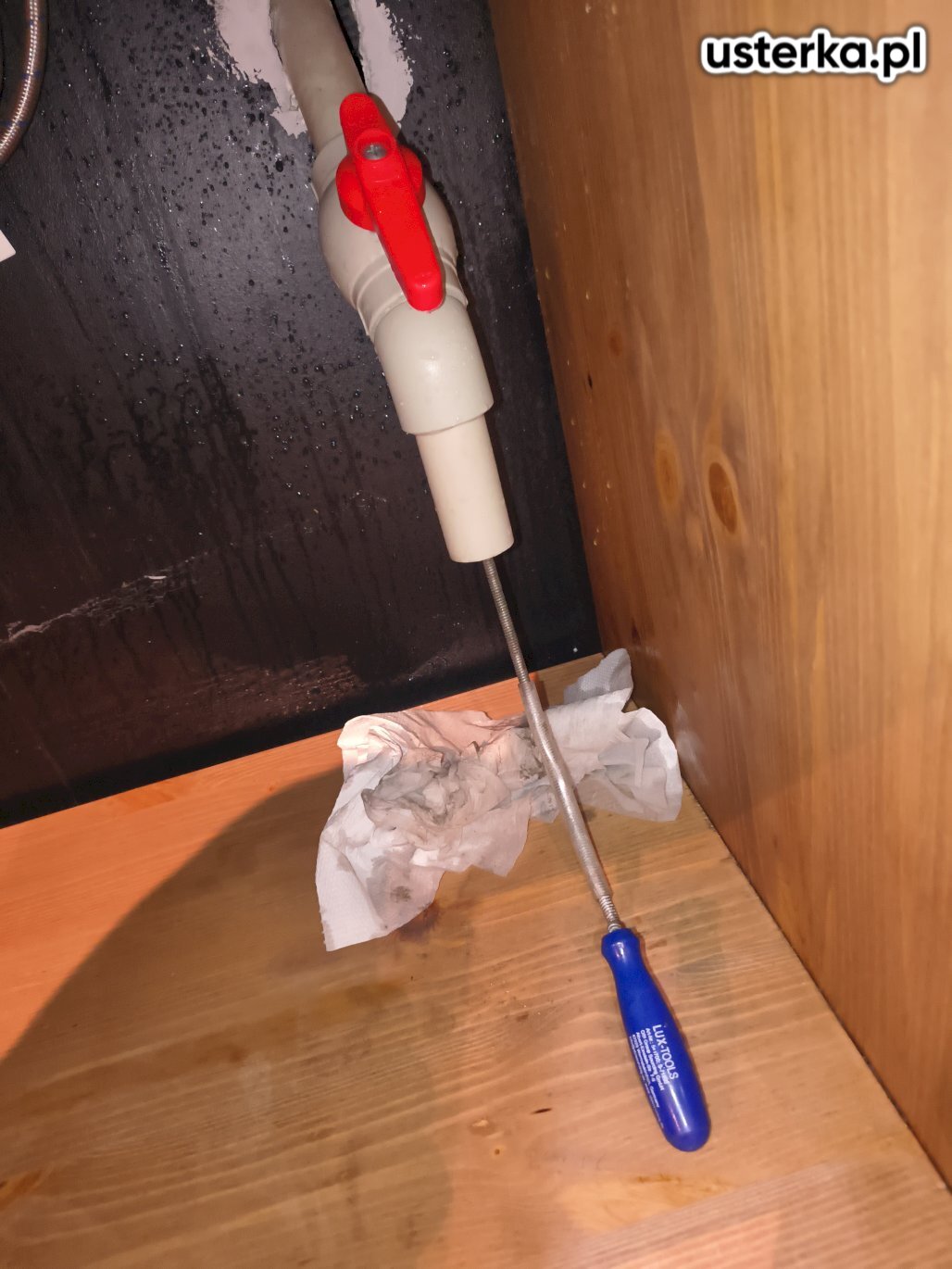 Zlokalizowałem i usunąłem wyciek wody pod zlewem.