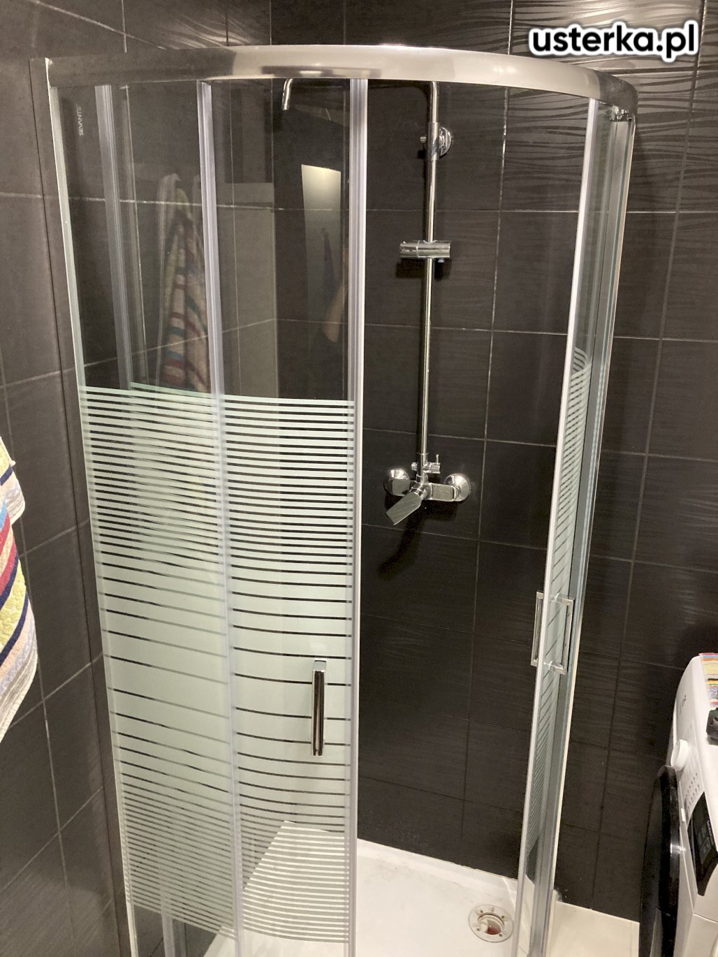 Zdemontowano starą kabinę prysznicową i zamontowano nową, dokonując niezbędnych modyfikacji i regulacji. Usunięto stary silikon nad brodzikiem i położono nowy, biały oraz przezroczysty. Zamontowano deszczownicę. Brodzik i odpływ są w dobrym stanie. Prace wykonano prawidłowo.