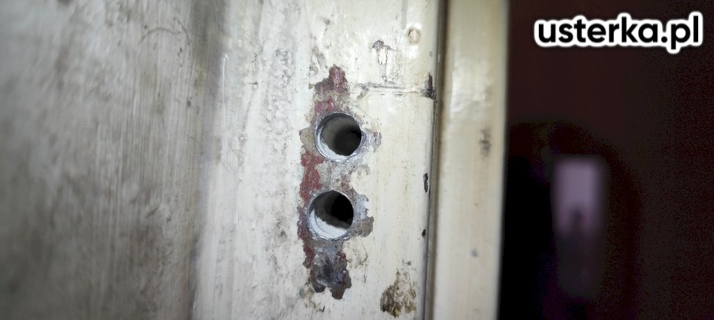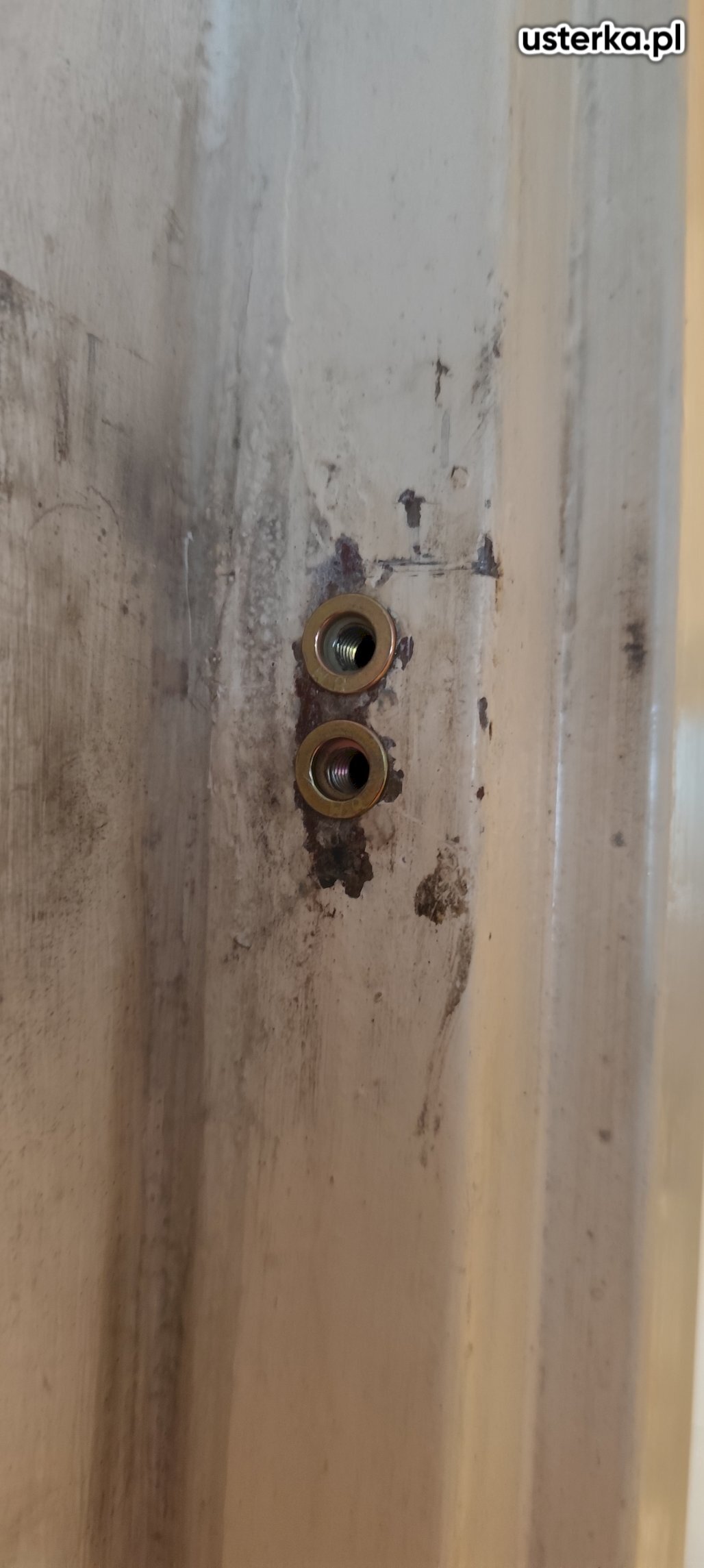 Moja praca polegała na ponownym zamocowaniu wyrwanego górnego zawiasu w futrynie drzwi łazienkowych. W tym celu zastosowałem nitonakrętki, które umożliwiły trwały i stabilny montaż zawiasu.