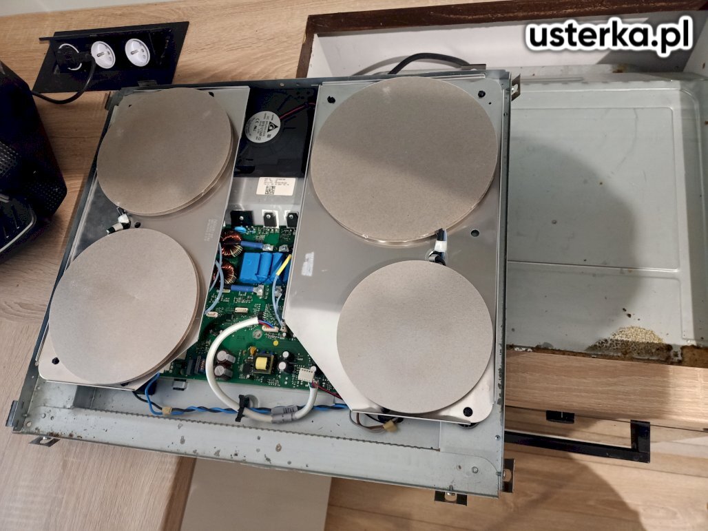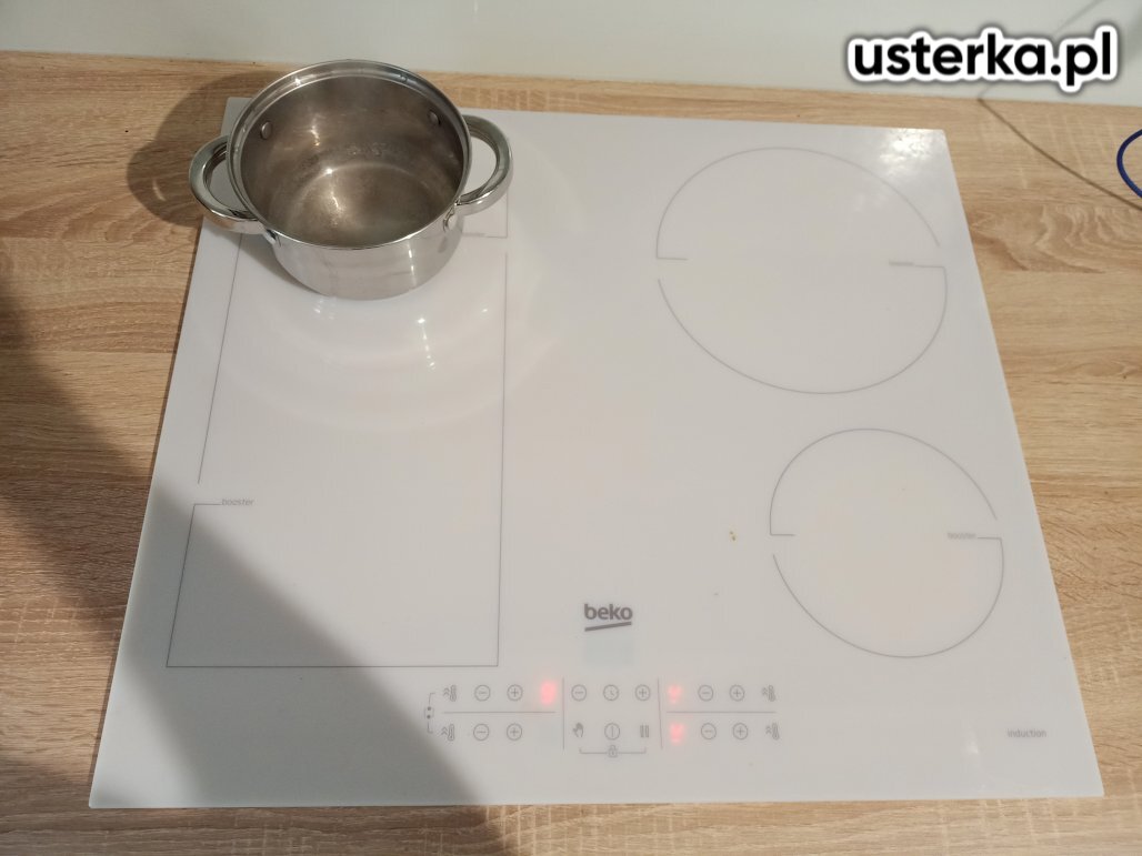 Płyta indukcyjna Beko – przyczyną usterki było zalanie panelu sterowania. Po demontażu i oczyszczeniu panelu urządzenie działa prawidłowo, wszystkie pola grzewcze są sprawne.