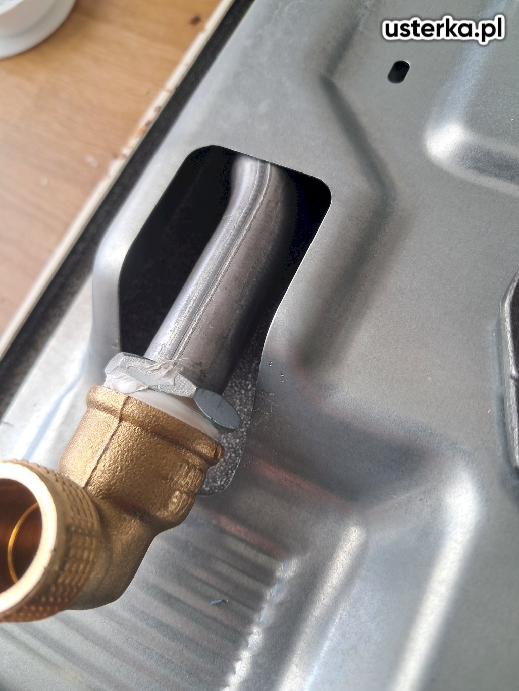 Płyta gazowa była nieprawidłowo podłączona — brakowało uszczelki, a śruby były luźne, co powodowało ulatnianie się gazu. Zamontowałem nową uszczelkę, dokręciłem śruby i przeprowadziłem próbę szczelności.