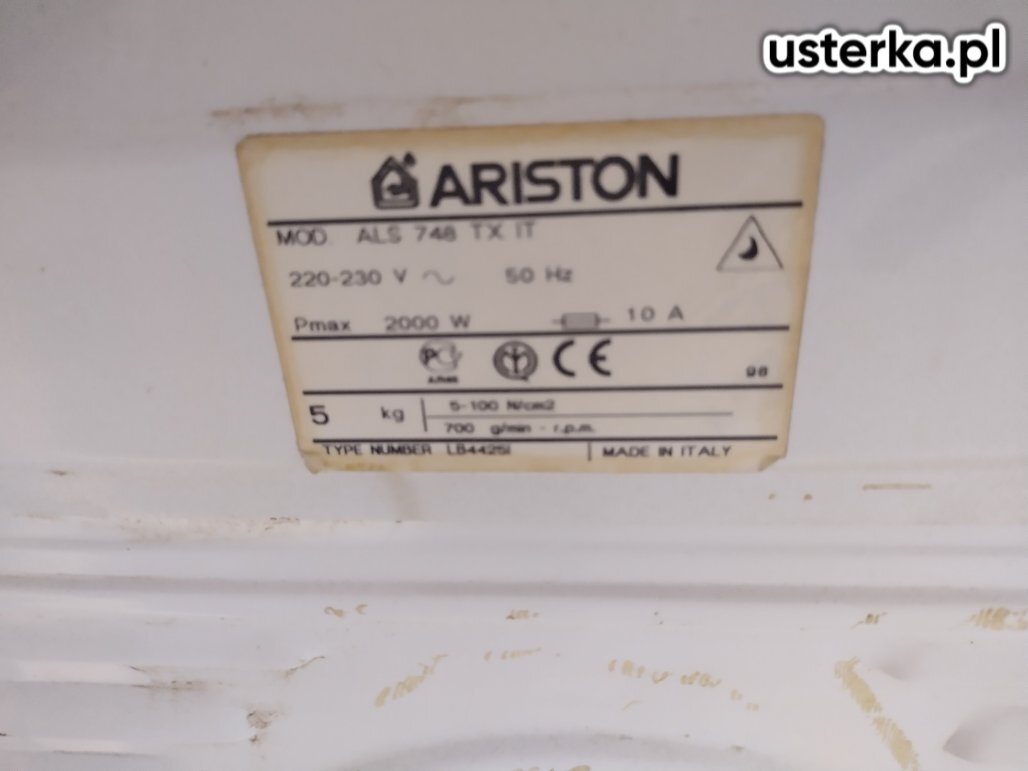 Na miejscu przeprowadzono diagnostykę pralki Ariston. Stwierdzono liczne usterki oraz znaczne zużycie podzespołów, w tym mechanizmu blokady drzwi.