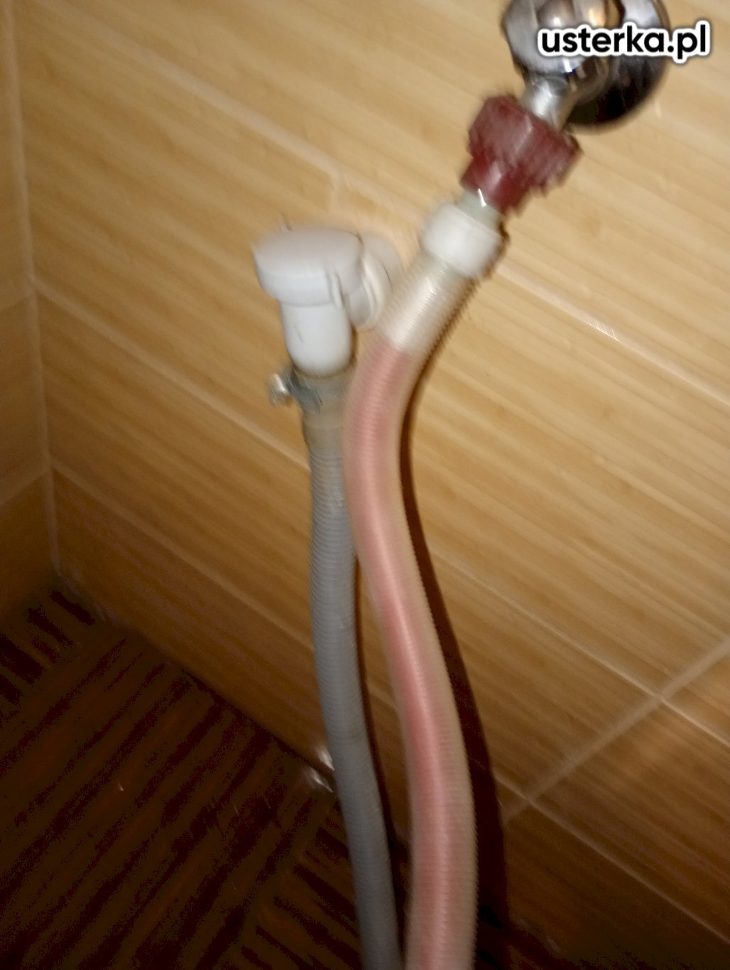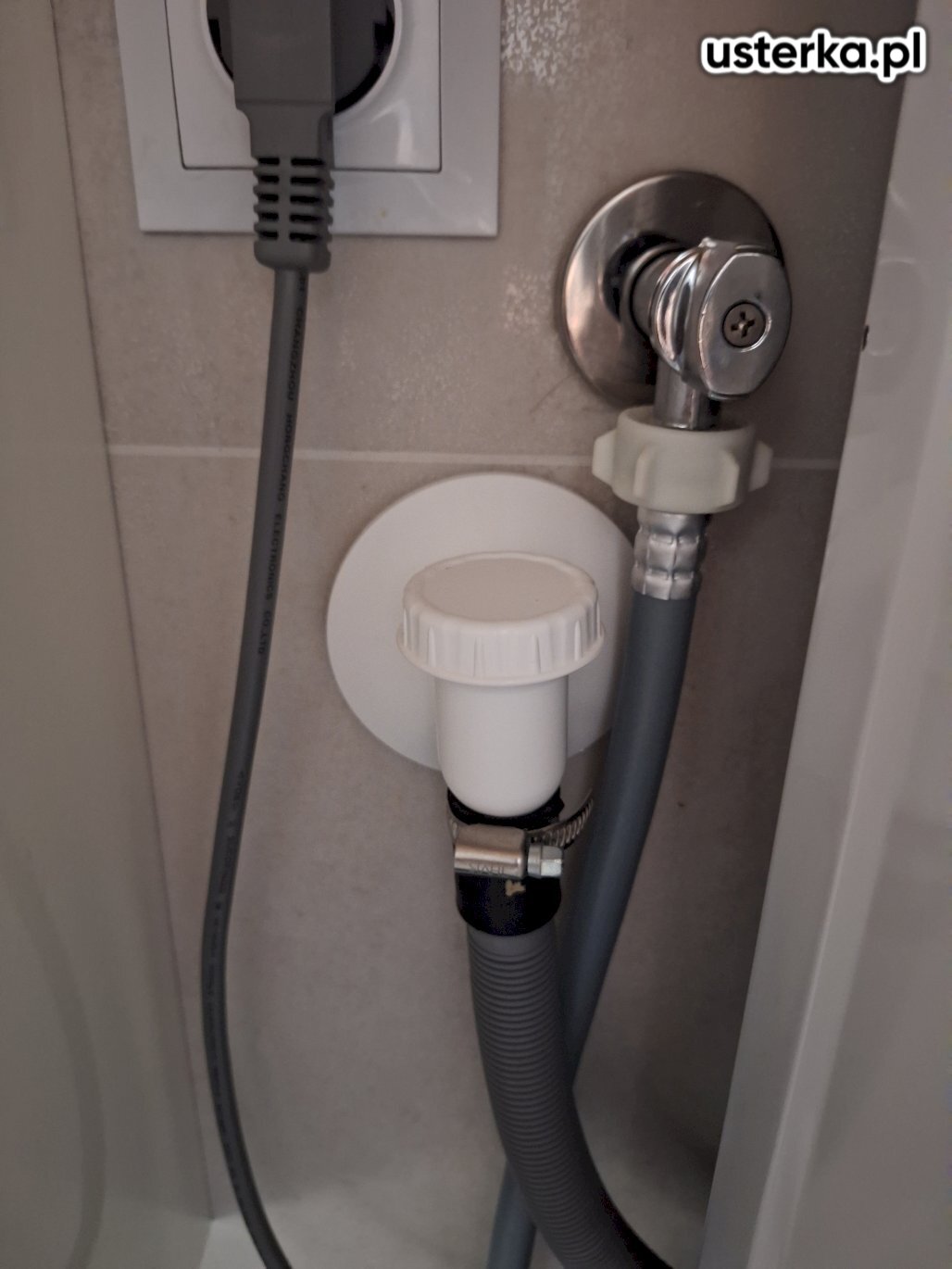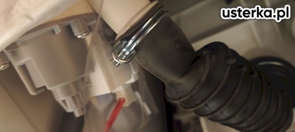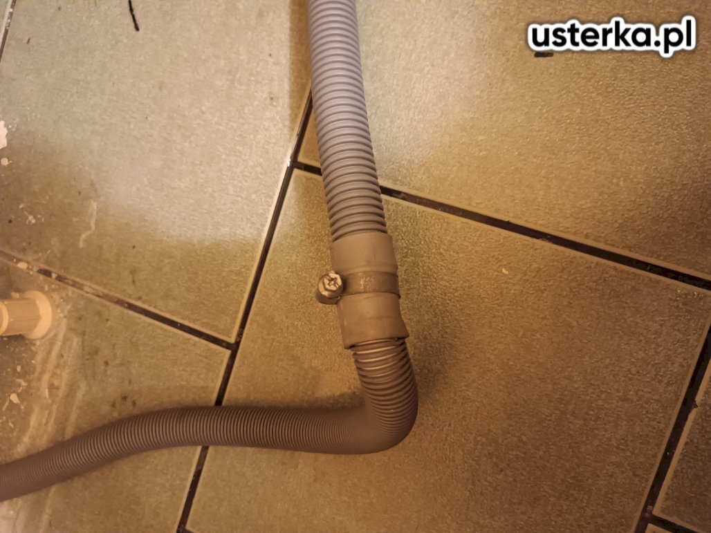 Wymieniono uszczelkę w rurze odpływowej i prawidłowo zamocowano wąż pralki.