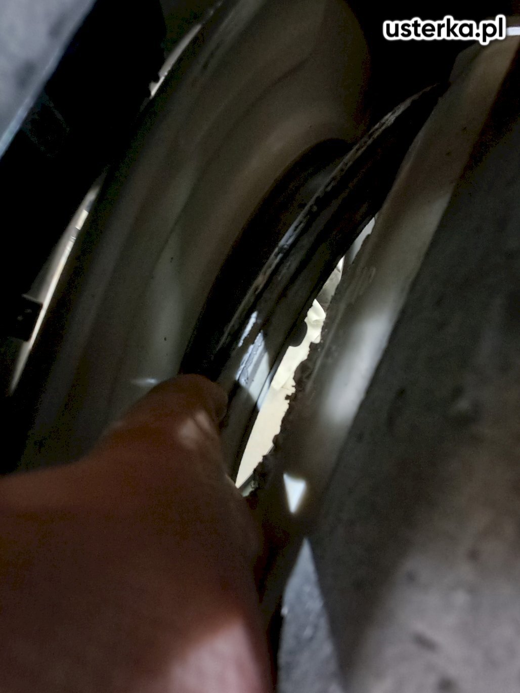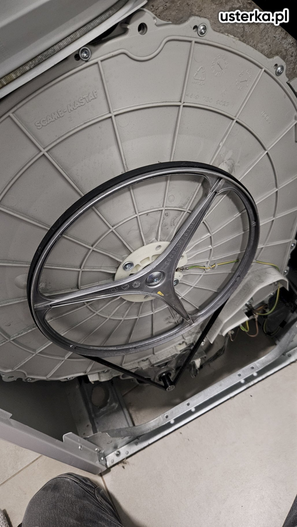 Pralka Whirlpool, spadł pasek napędowy, po ponownym założeniu urządzenie działa prawidłowo i zostało sprawdzone pod obciążeniem.
