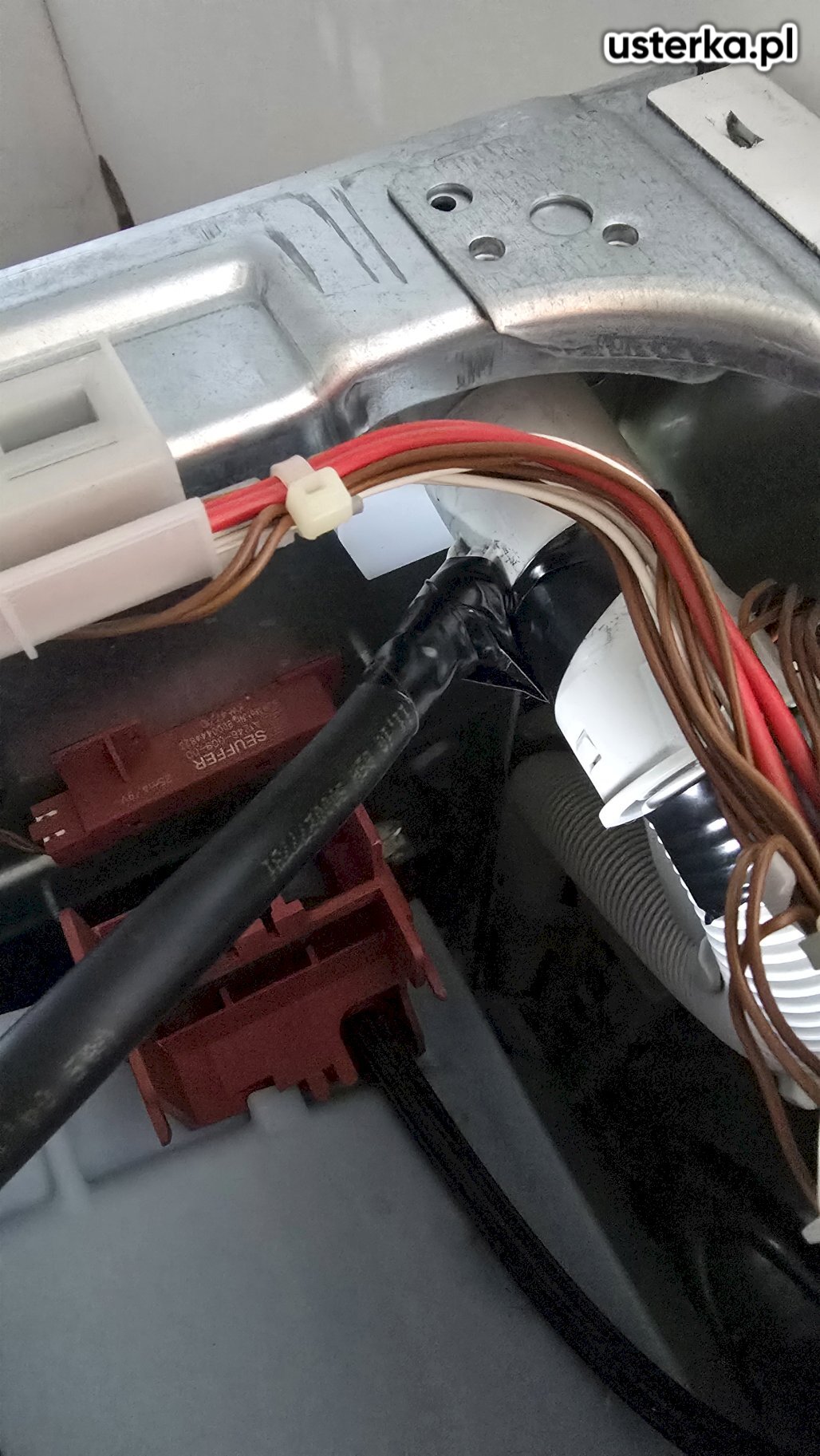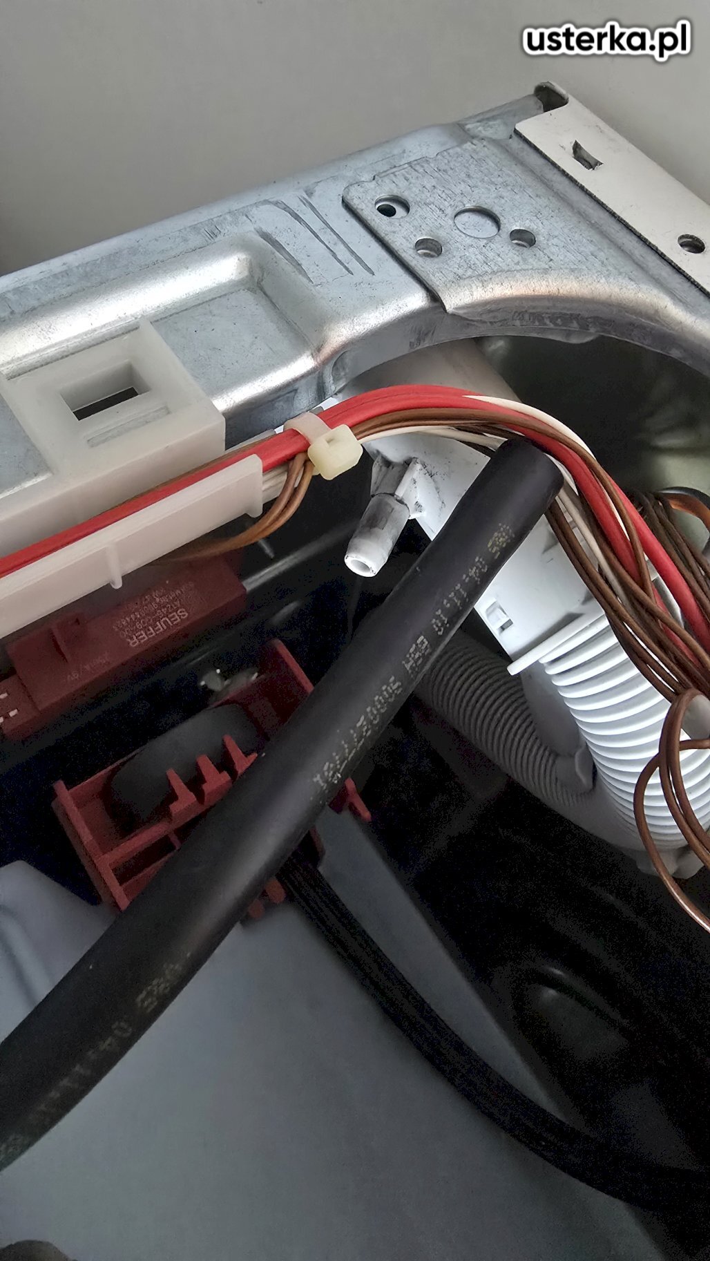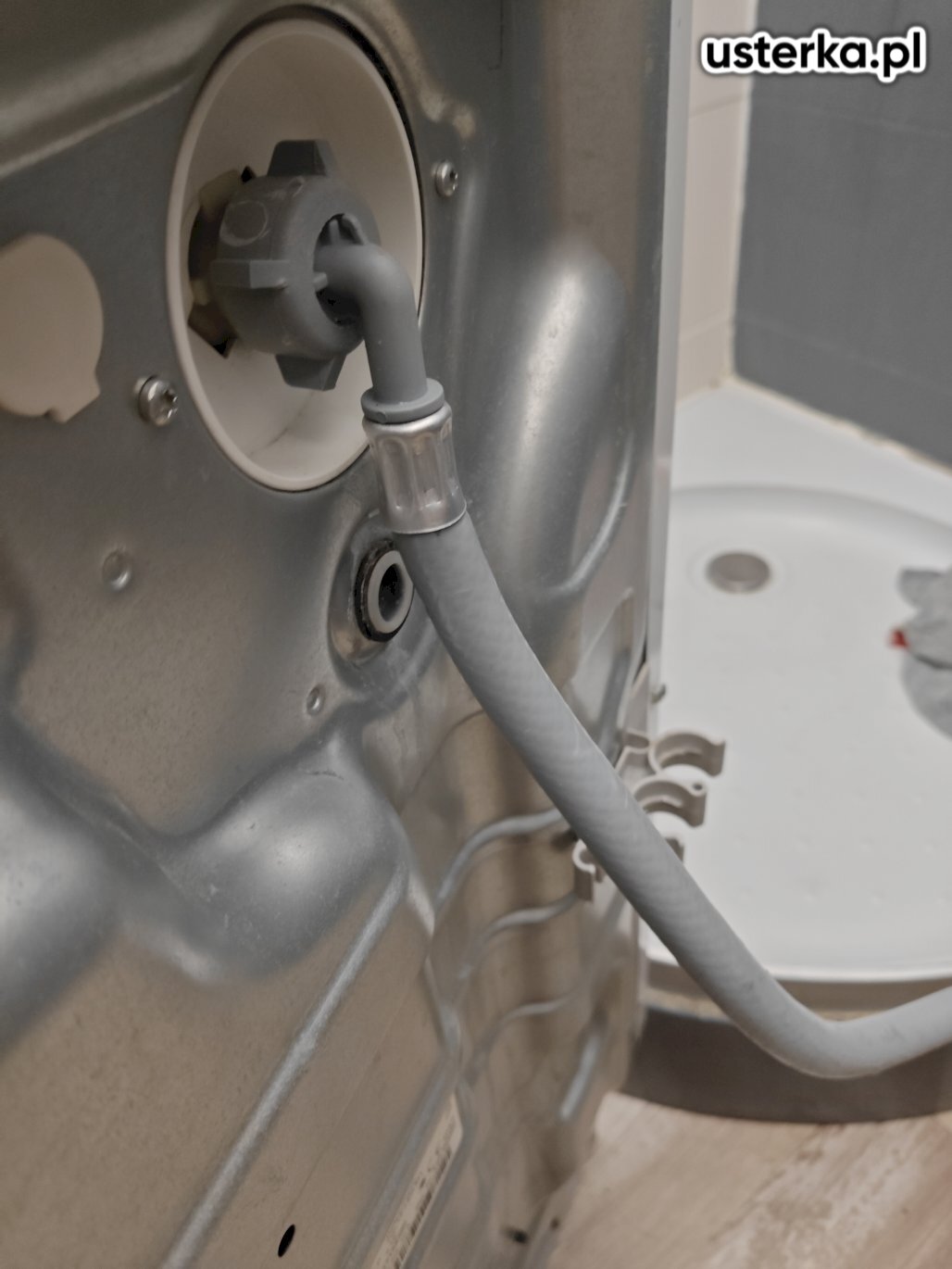 Wymieniono elastyczny wąż do pompy. Pralka działa prawidłowo, nie ma wycieków.