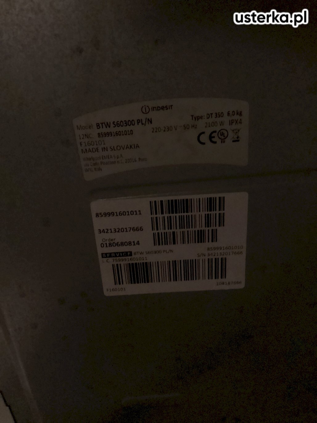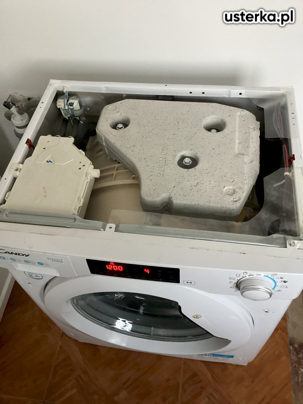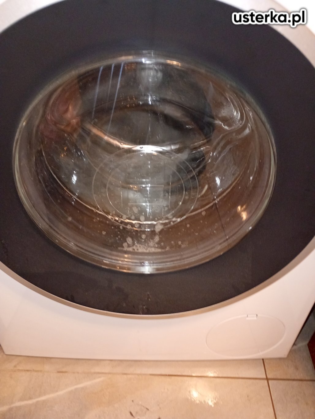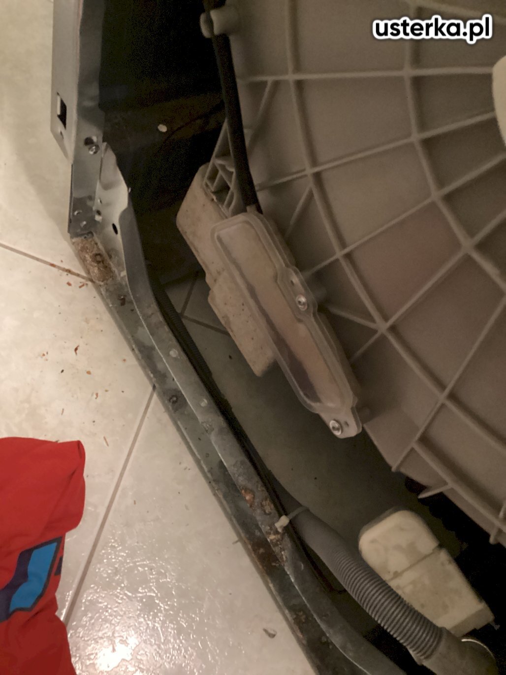 Stwierdzono zerwanie paska napędowego, co powoduje pozostawanie wody w bębnie.