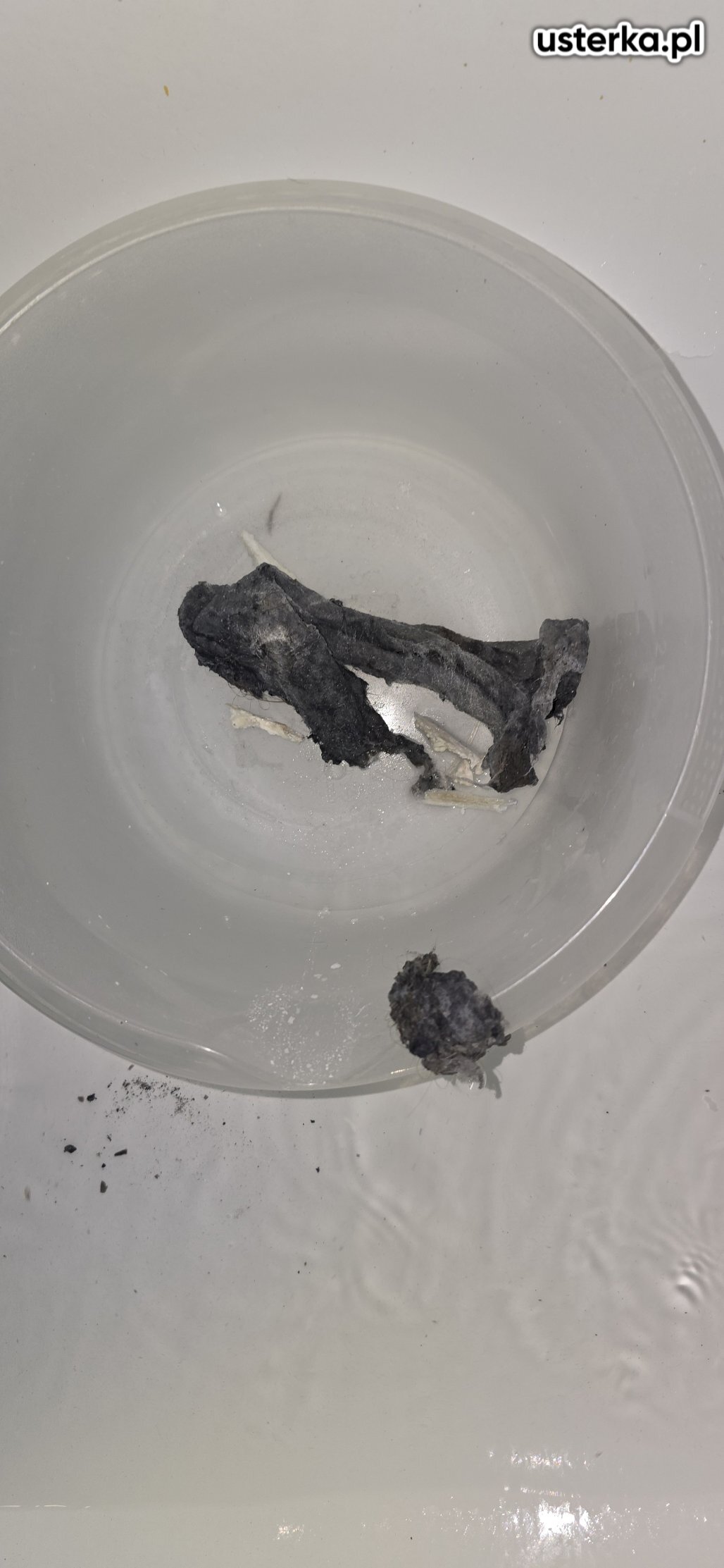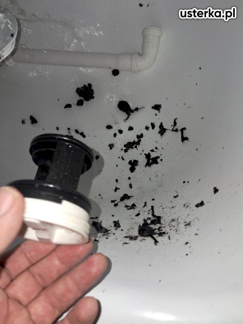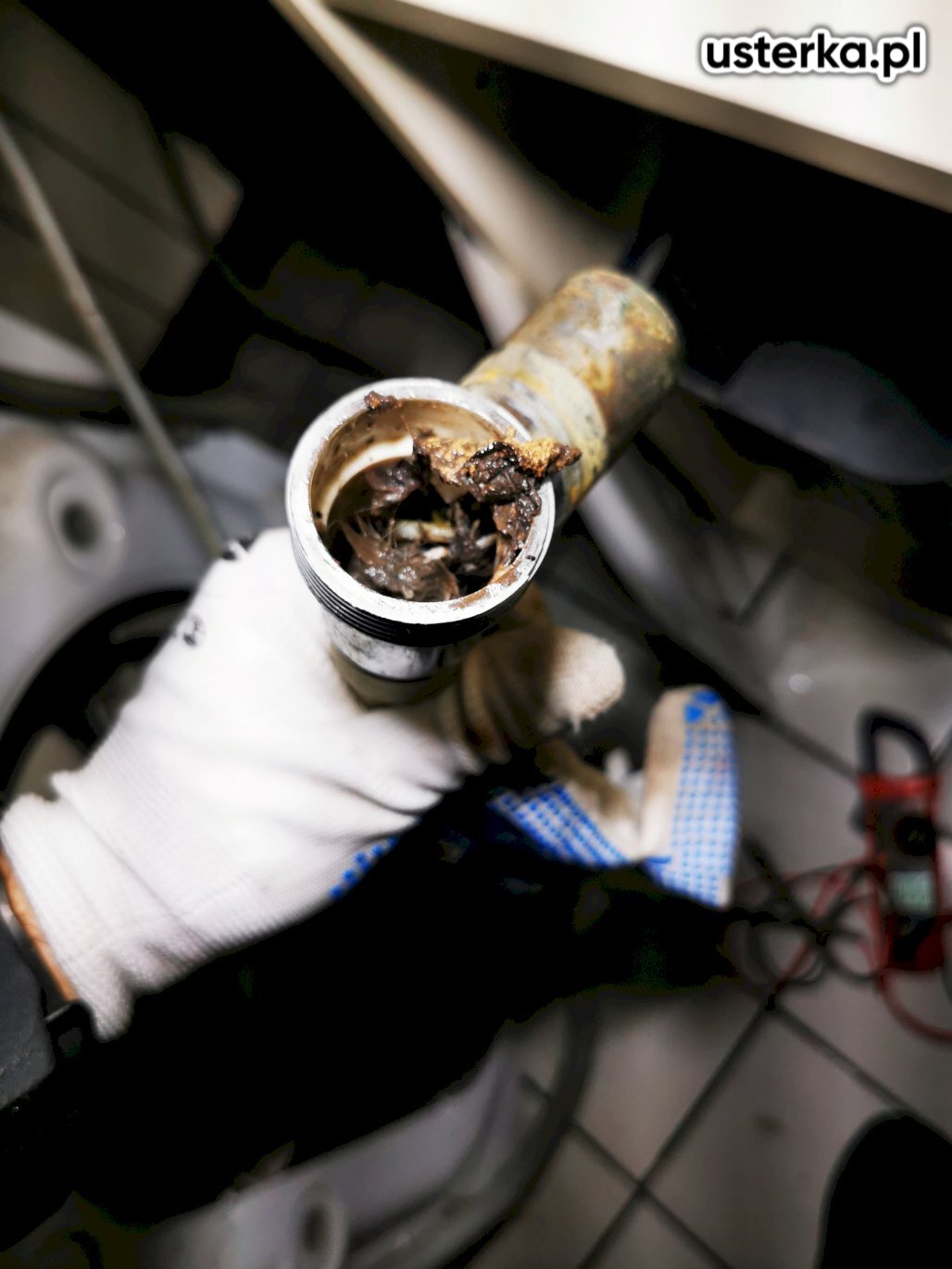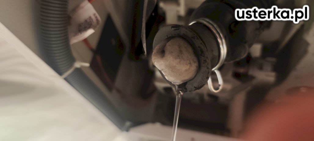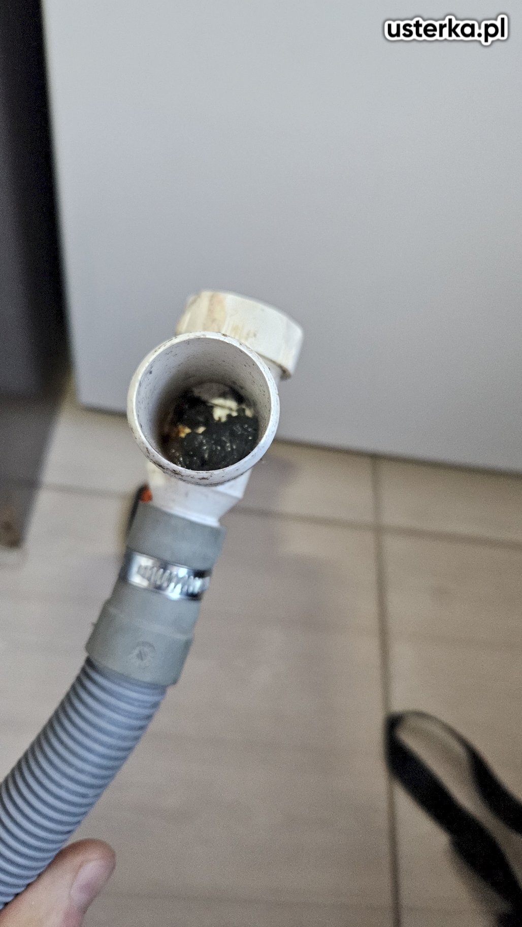 Filtr oraz rura odpływowa pralki były zatkane, co uniemożliwiało odprowadzanie wody.