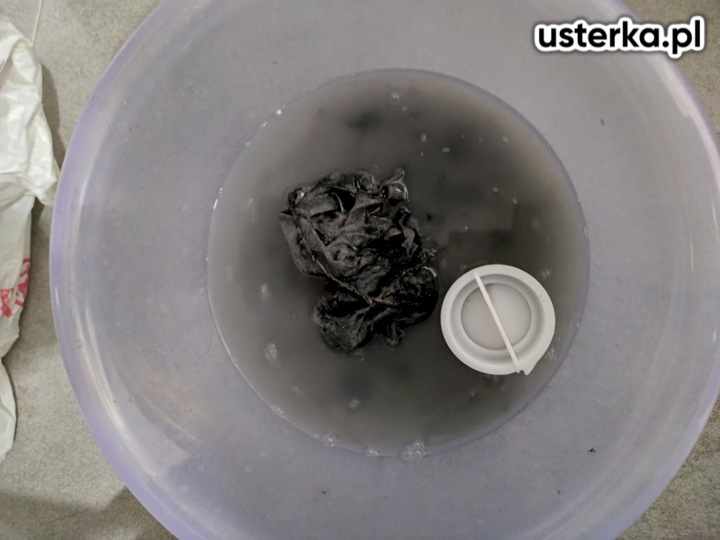 Zdemontowano trzy pompy odpływowe oraz wszystkie przewody i węże. Usunięto dużą ilość zanieczyszczeń po praniu koca.