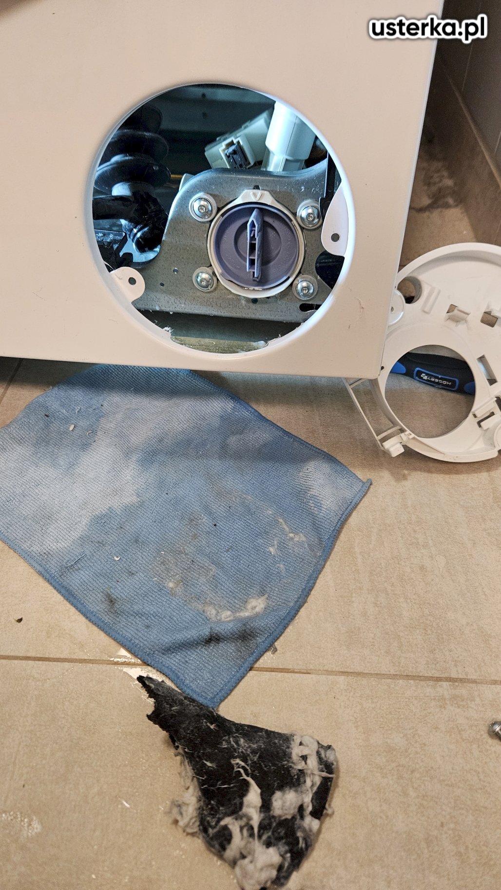 W pralce Haier doszło do urwania filtra, który utknął wewnątrz urządzenia. Wykonałem demontaż uszkodzonego filtra oraz wyczyściłem węże odpływowe od bębna do filtra. Klient zamówi nowy filtr i zamontuje go samodzielnie.