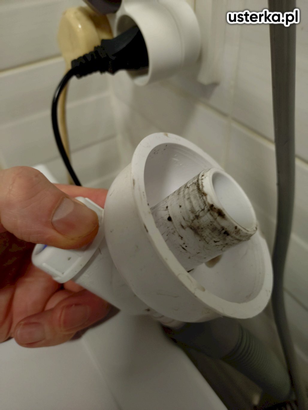 Wyczyściłem odpływ, usuwając zator powstały ze śmieci w miejscu złącza węża odpływowego.